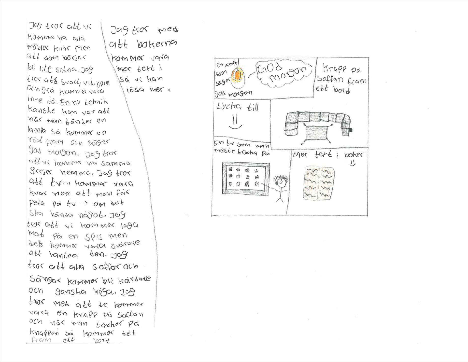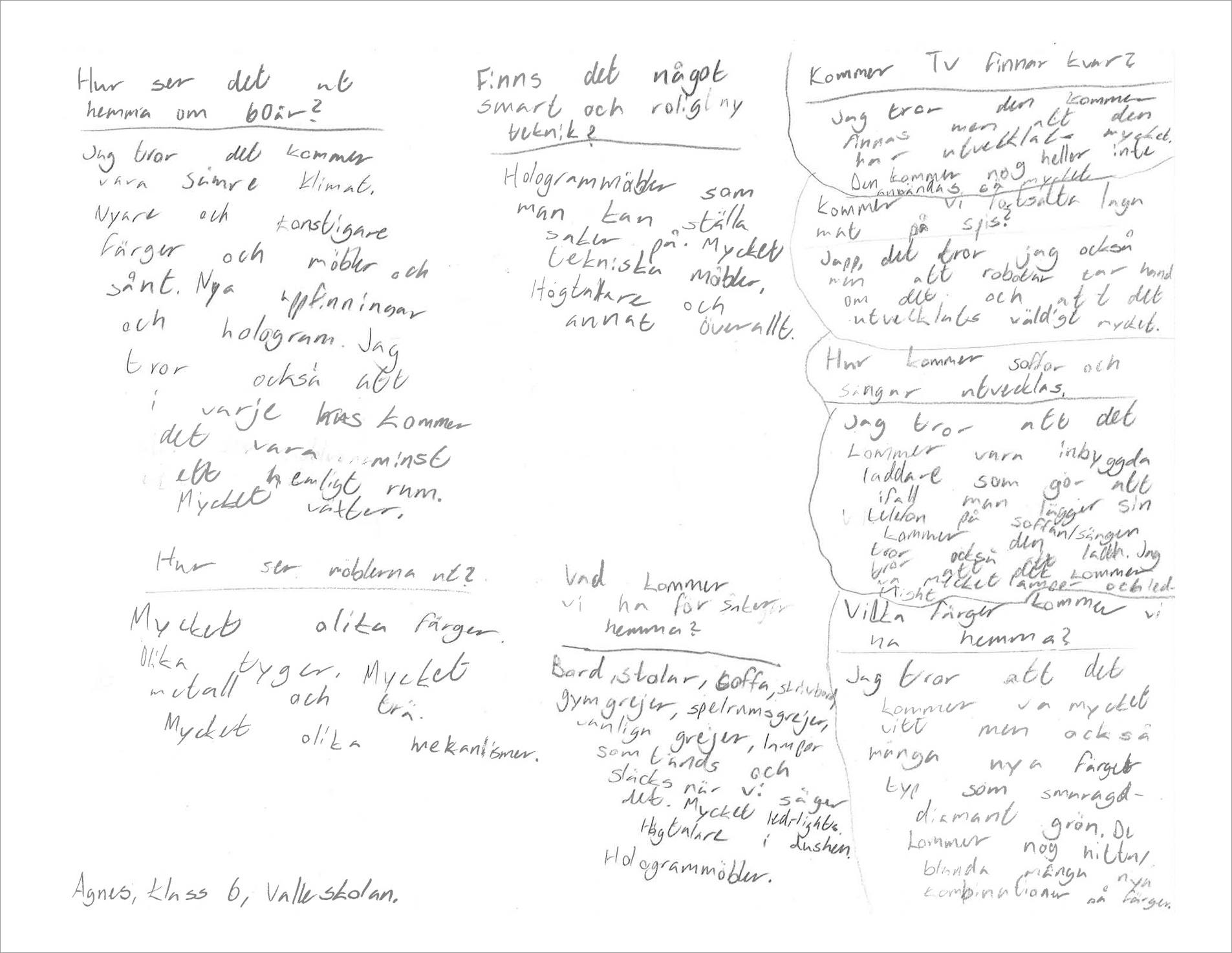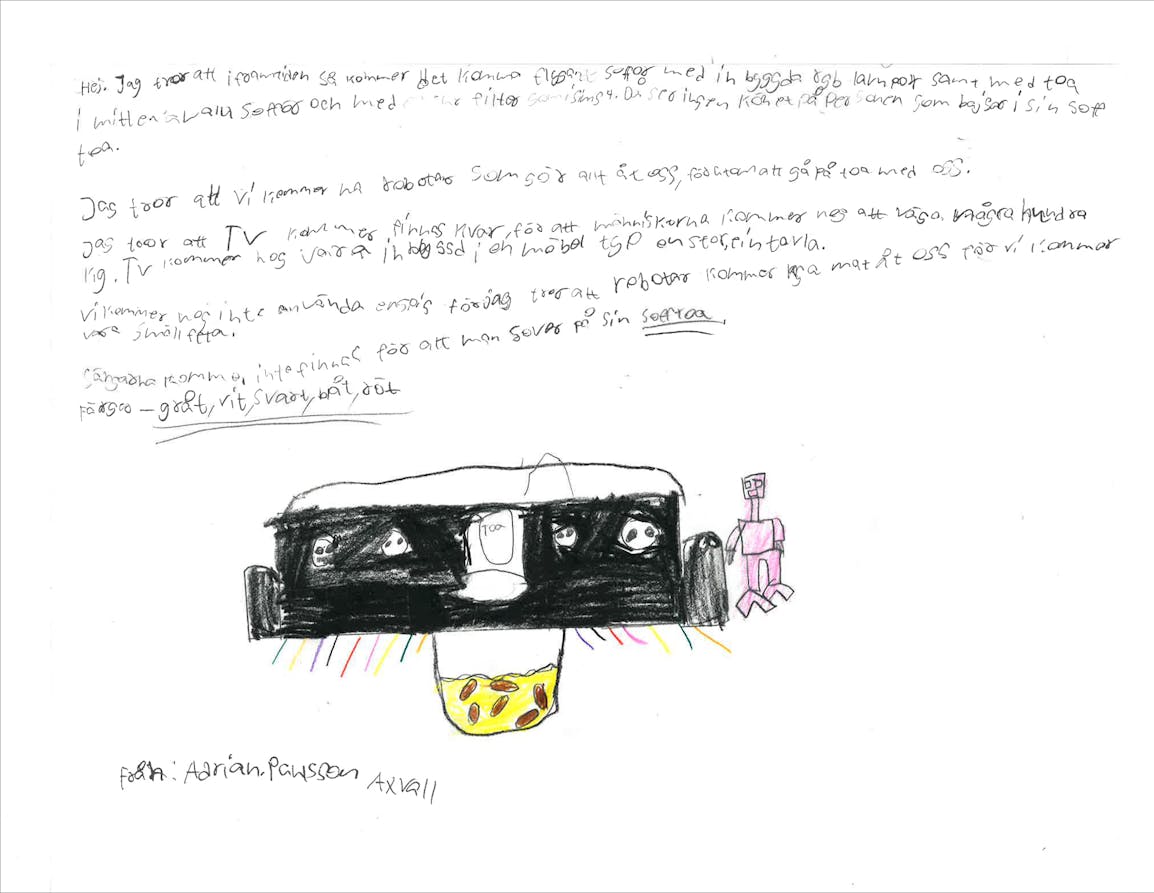 Ja, så kommer det bli. Åtminstone om man förlitar sig på gissningar hos eleverna i årskurs 6 på Valleskolan. Spännande, eller hur? Tack Adrian, Alva, Agnes, Astrid, Mirella och alla ni andra som hittade på så mycket smart för framtidens hem!