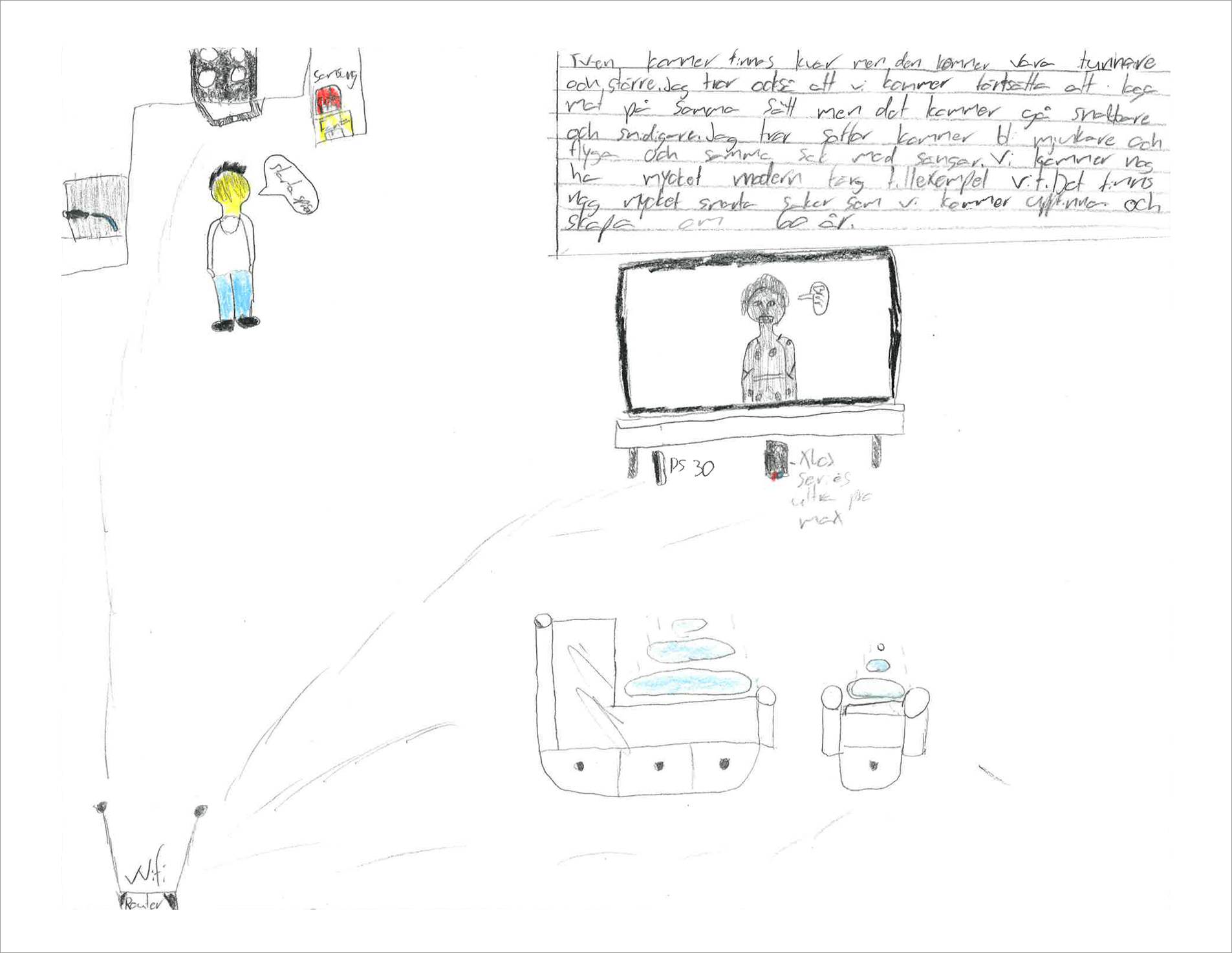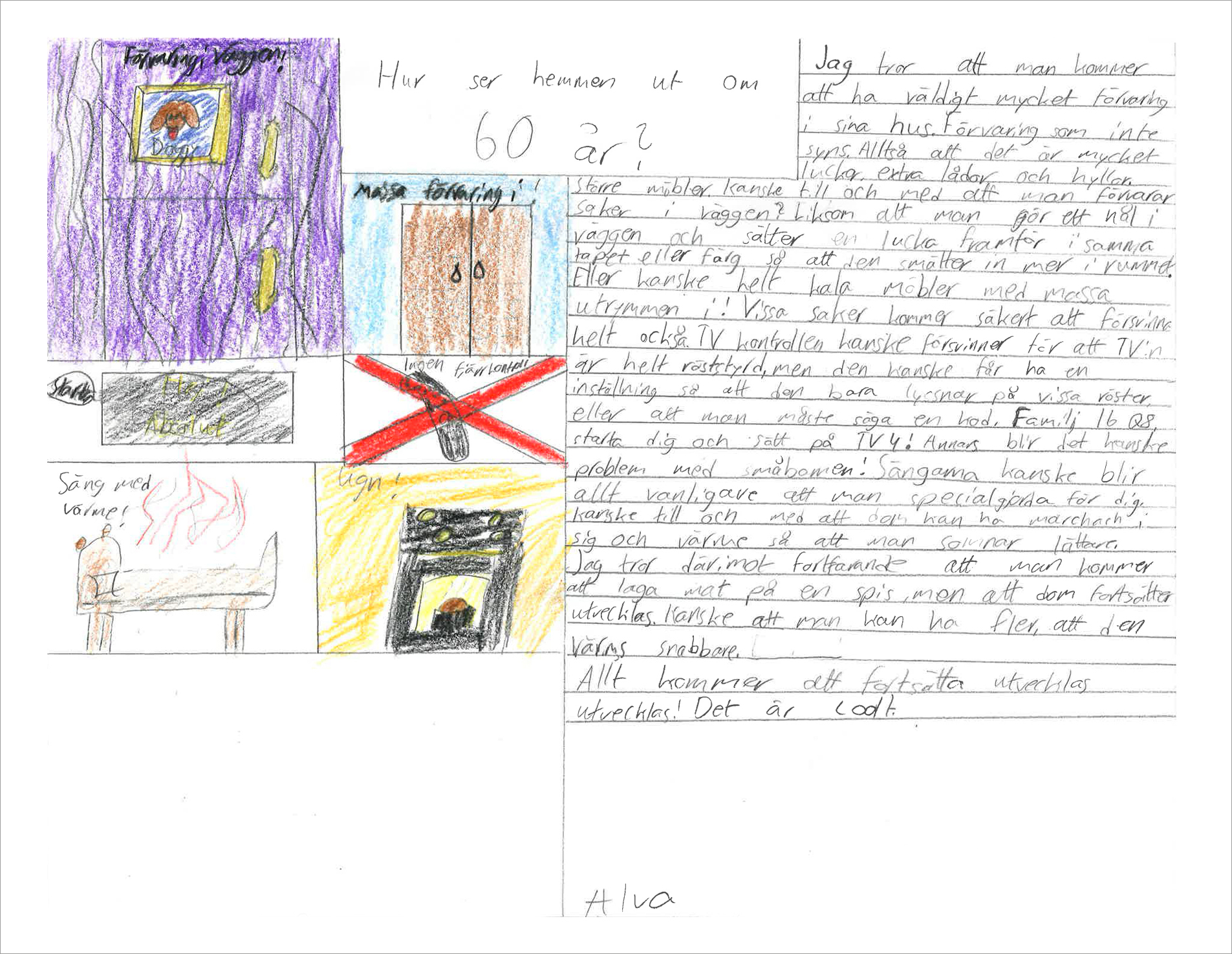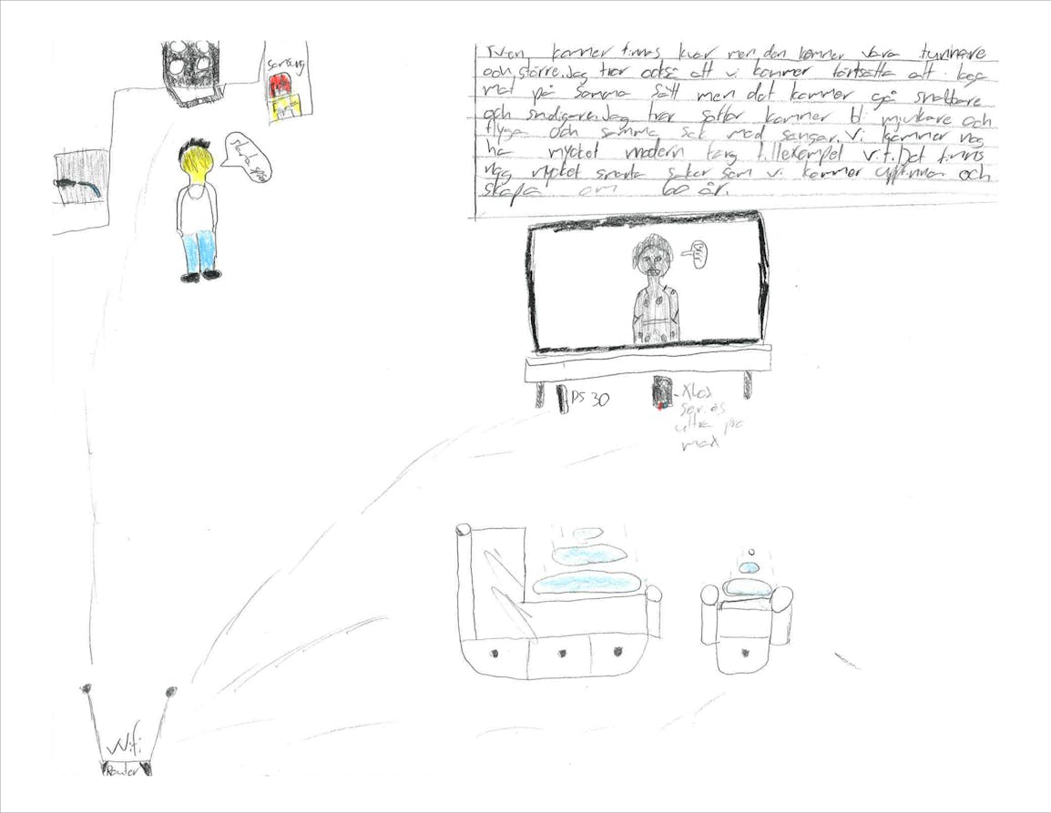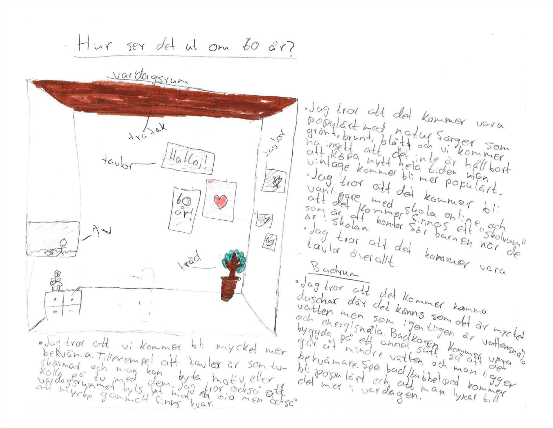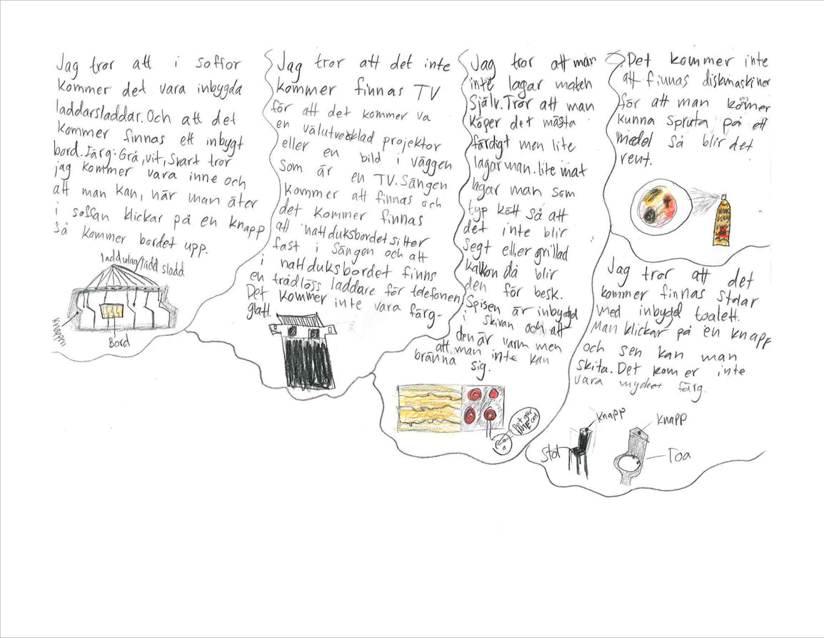 Årskurs 6 på Valleskolan gissar och ritar kring frågan "Hur kommer våra hem se ut om 60 år?"
