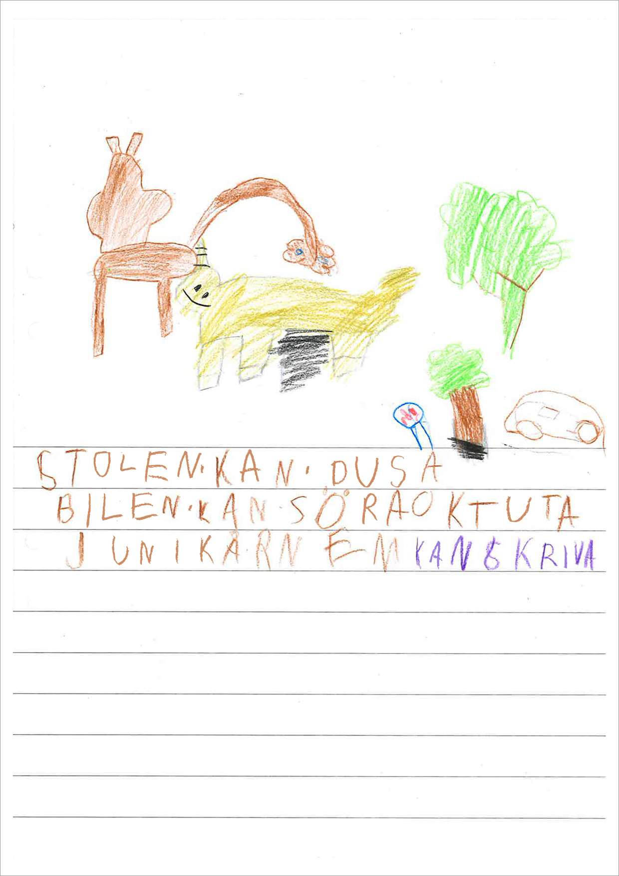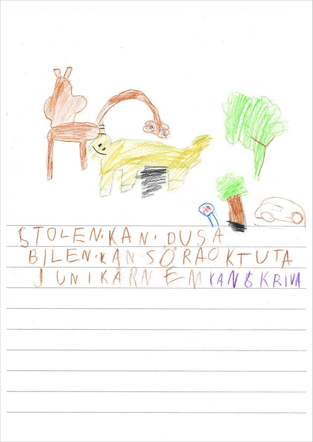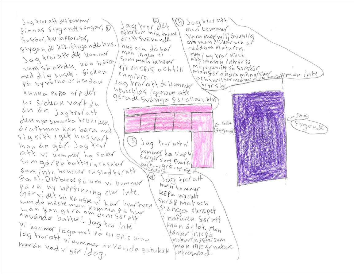 Förskoleklassen Cassiopeja på Käpplundaskolan gissar och ritar kring framtidens uppfinningar
