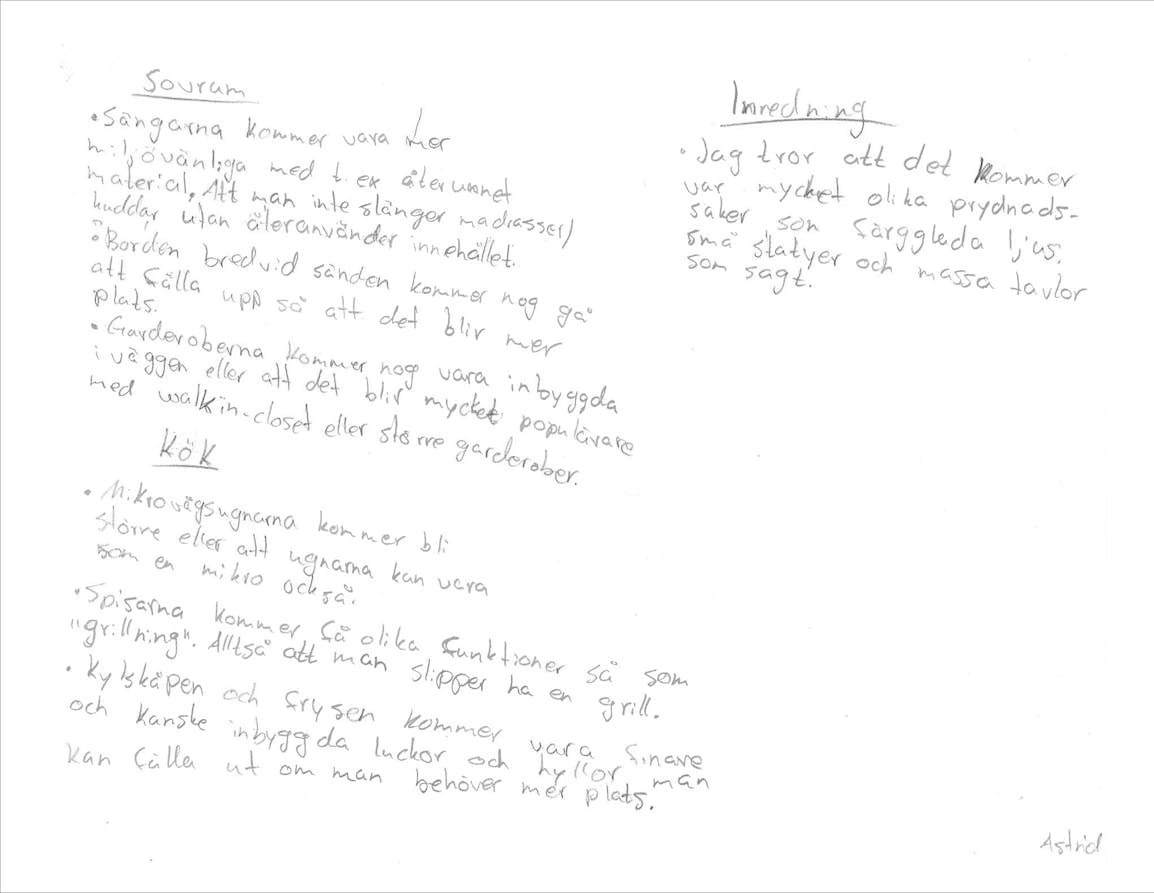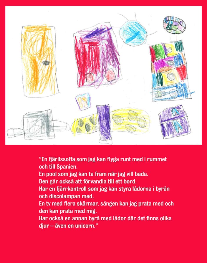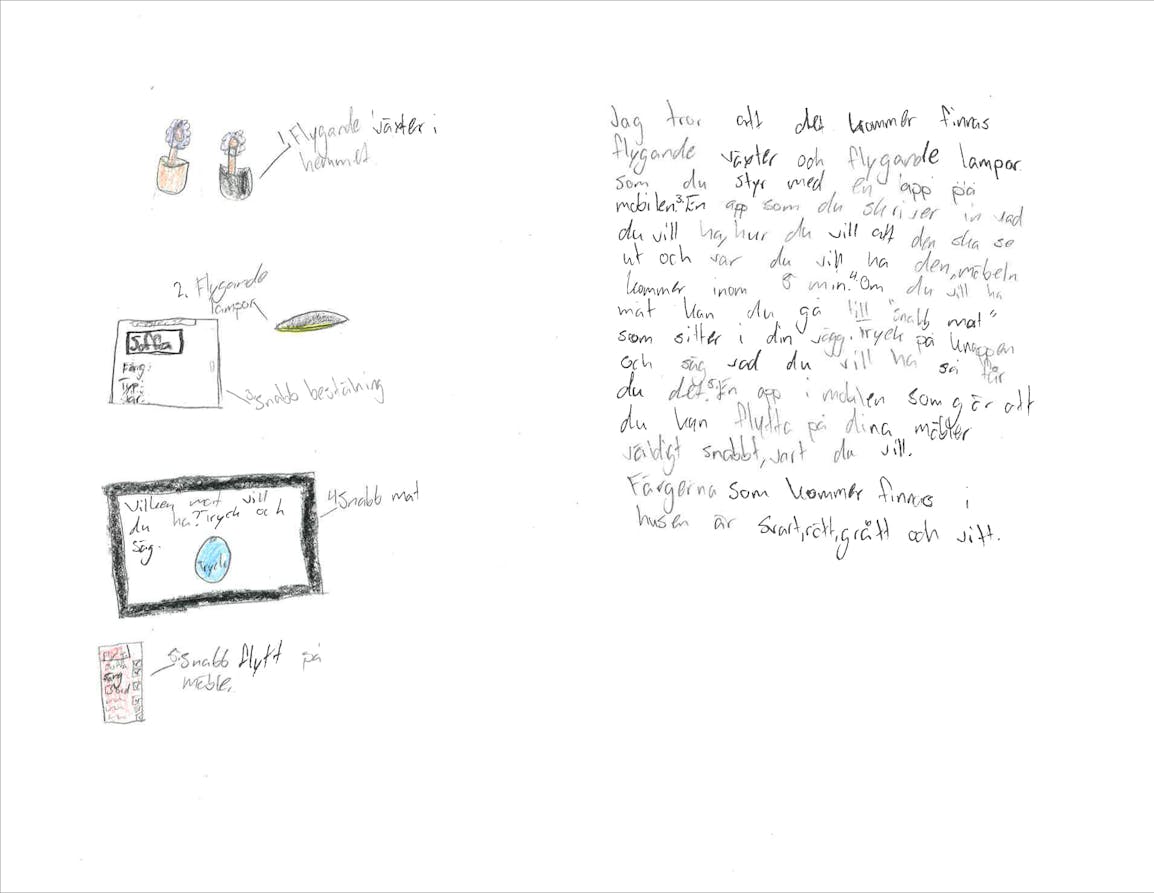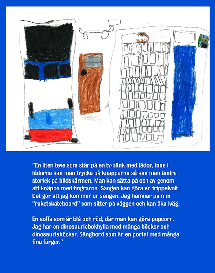 Det ska bli spännande att se om några av dessa spaningar och önskningar blir verklighet. Tack till barnen på avdelningarna Diamanten och Rubinen som ville vara med och berätta om framtidens hem och rum!
