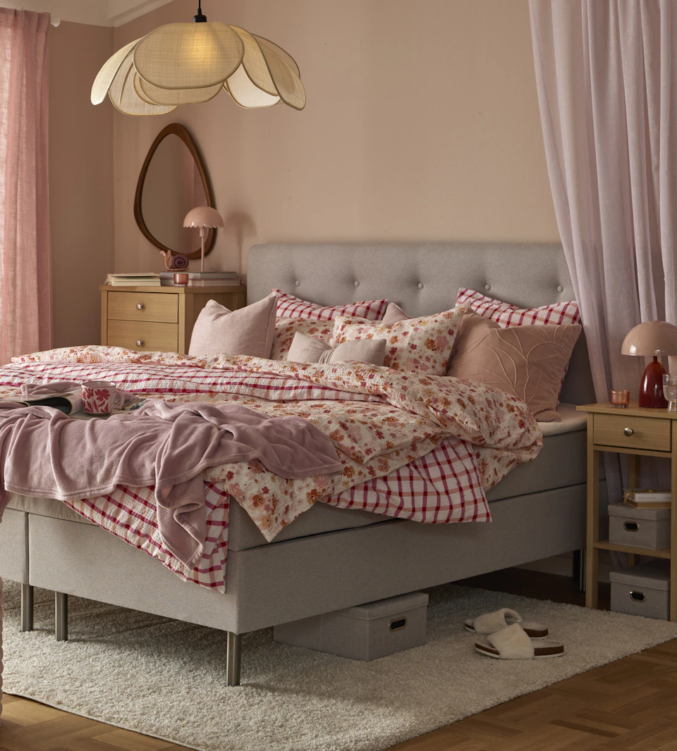 Rätt belysning i sovrummet skapar både harmoni och funktion. Välj varmt, dimbart ljus för att sätta stämningen och kombinera med praktiska lampor. En taklampa ger allmänljus, medan sänglampor eller vägglampor vid sängen är perfekta för läsning. Placera läslampan i ögonhöjd, riktad nedåt för minimalt bländande ljus och maximal komfort. Med rätt placering och belysning blir sovrummet en lugn och funktionell oas!