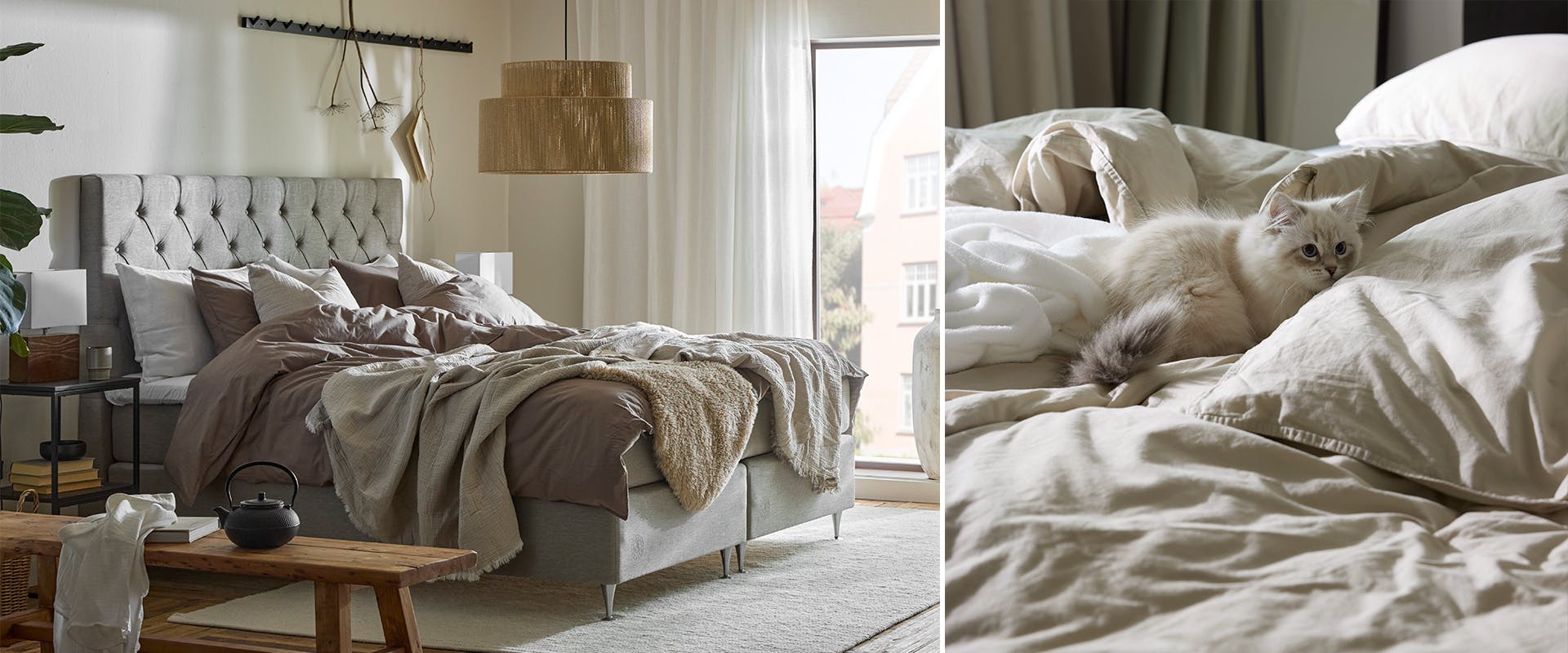 Dags för ett nytt påslakanset? Våga ta ut svängarna med ett paisleymönstrat eller mixa ett enfärgat bäddset i linne med nya färgglada kuddfodral. Nya, sköna påslakanset av bomullssatin ger en sval känsla. Vad behöver du och din säng?
