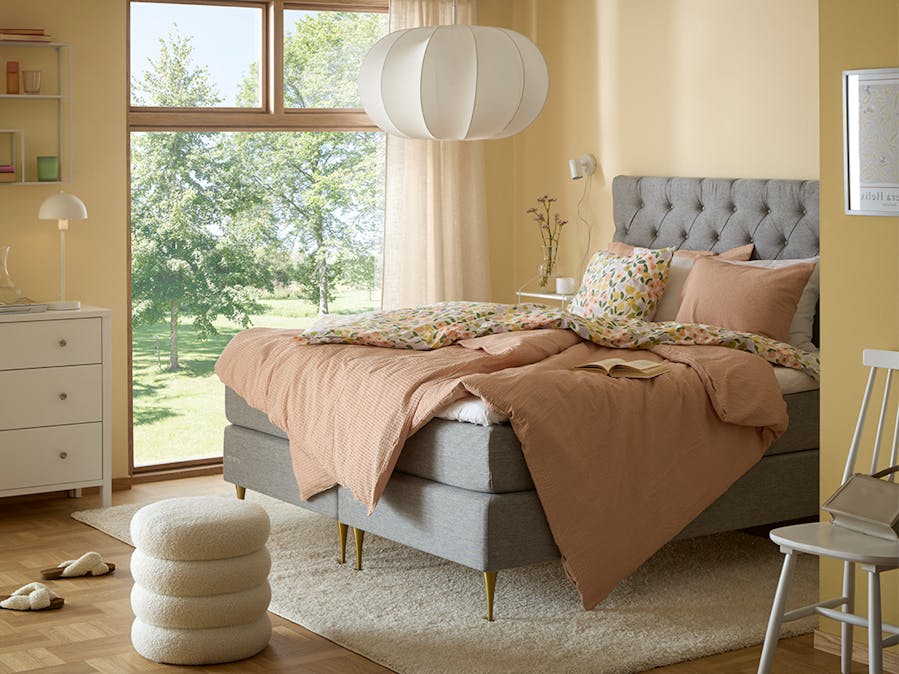Låt sovrummet andas säsong med lätta textilier, ljusa toner och naturliga material. En mysig bäddning i sommarens färger, fluffiga kuddar och ett svalt täcke. Med små medel kan du göra stor skillnad i såväl sovrummets utseende som sömnkvalitet!