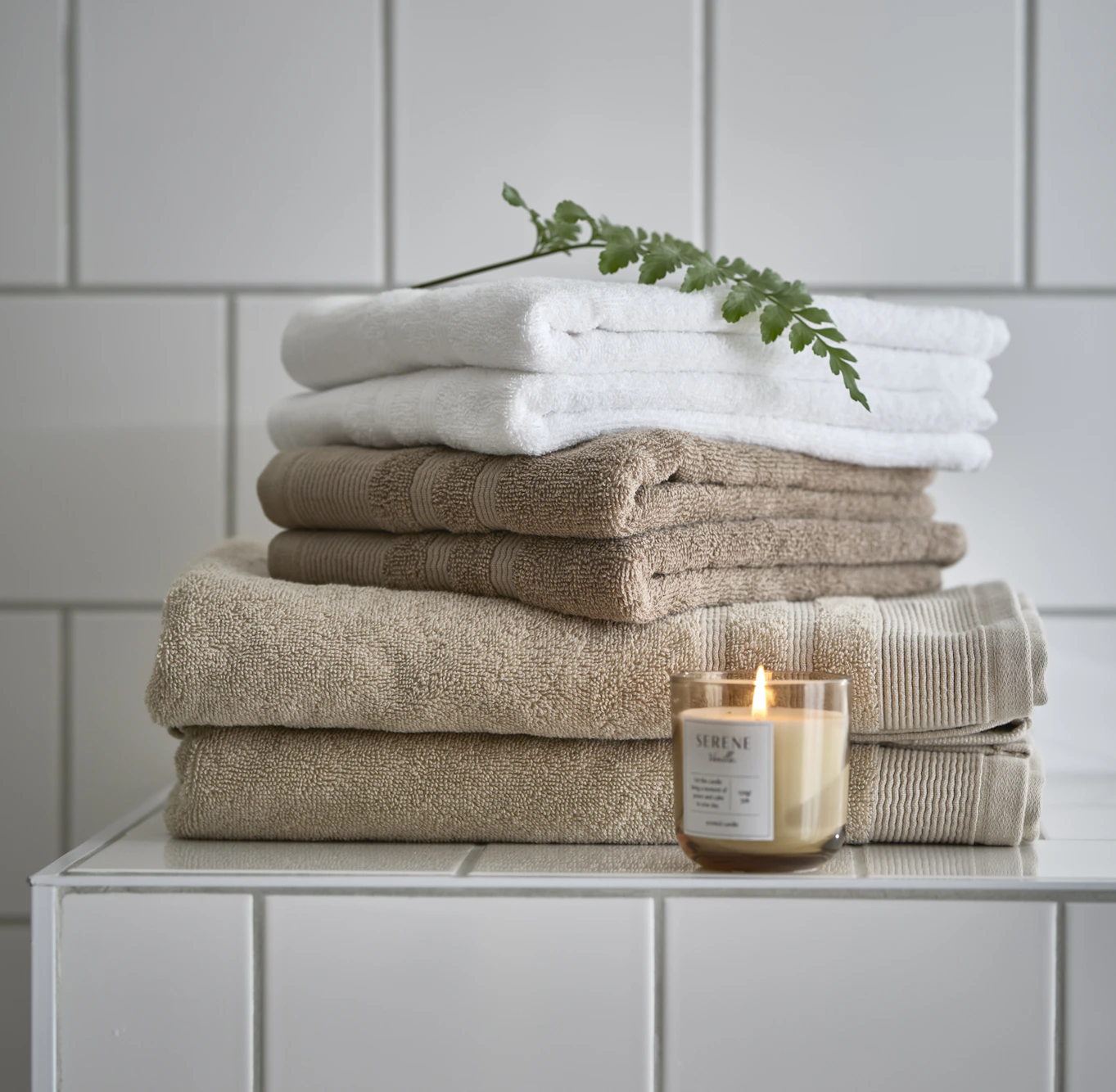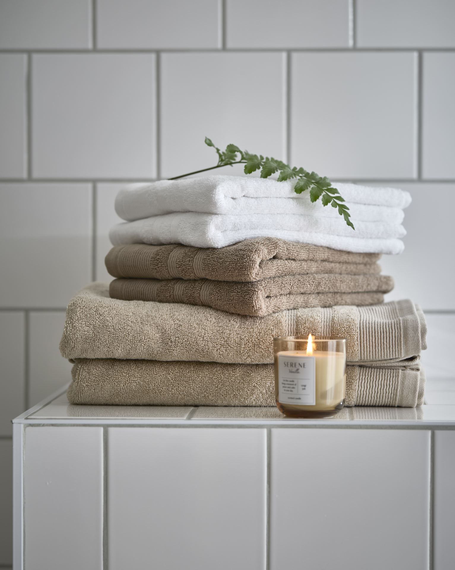 Mys till det lite i badrummet! Ställ undan tandborstar, rakhyvlar och halvtomma flaskor. Tänd ett doftljus eller två (på ett säkert ställe) eller ställ in några doftpinnar. Uppdatera med nya handdukar, en fräsch badrumsmatta och förvara toalettpappersrullarna i en snygg korg.