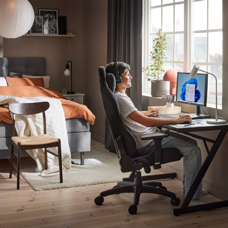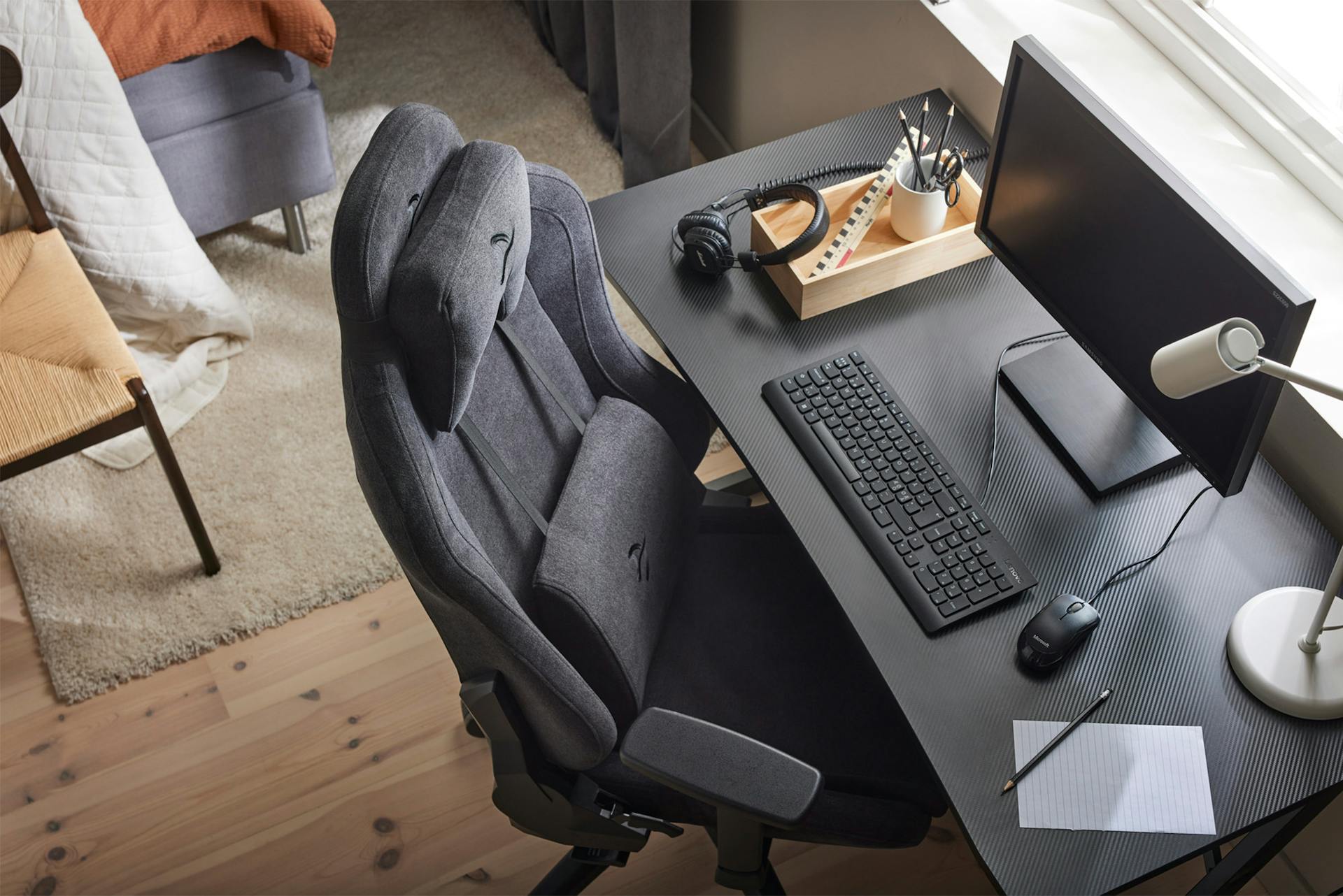 För den ultimata gamingupplevelsen behöver du få plats med en hel del, så ett riktigt bra och rymligt skrivbord är en viktig pusselbit. Det ska finnas utrymme för skärm (eller skärmar), tangentbord och en stor musmatta. Med ett höj- och sänkbart skrivbord kan du anpassa bordet så det passar din kropp perfekt. Det gör att du kan spela länge utan att få ont i ryggen och nacken. Tänk även på att växla mellan att stå och sitta så blir ryggen gladare.