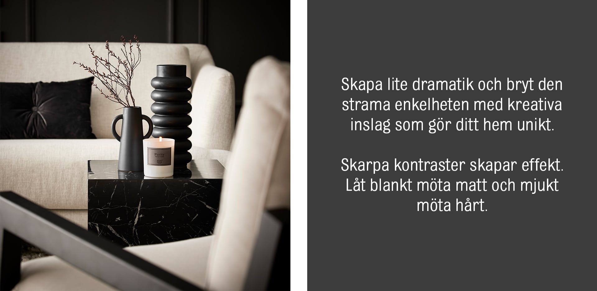 Eftersträva en kontrastrik perfektion eller varför inte modernt med en retrotwist. Våga kombinera färger som svart, vitt och grått – och små stänk av blått.