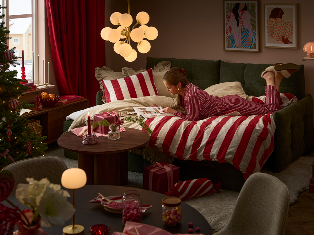 Julen är inte bara en tid för festliga middagar, klappar och tid tillsammans. Alla behöver vila mellan varven och sova gott för att orka fira vidare. Förbered för övernattande gäster. Se till att både du och de som vill stanna sover bekvämt. Upptäck våra sängar, bäddsoffor, extrabäddar och smarta madrasslösningar. Skapa extra sovplatser utifrån de förutsättningar du har och komplettera med mjuka täcken, kuddar och sköna påslakan. Vi hjälper dig gärna hitta allt du behöver för att få till en riktigt ombonad känsla.