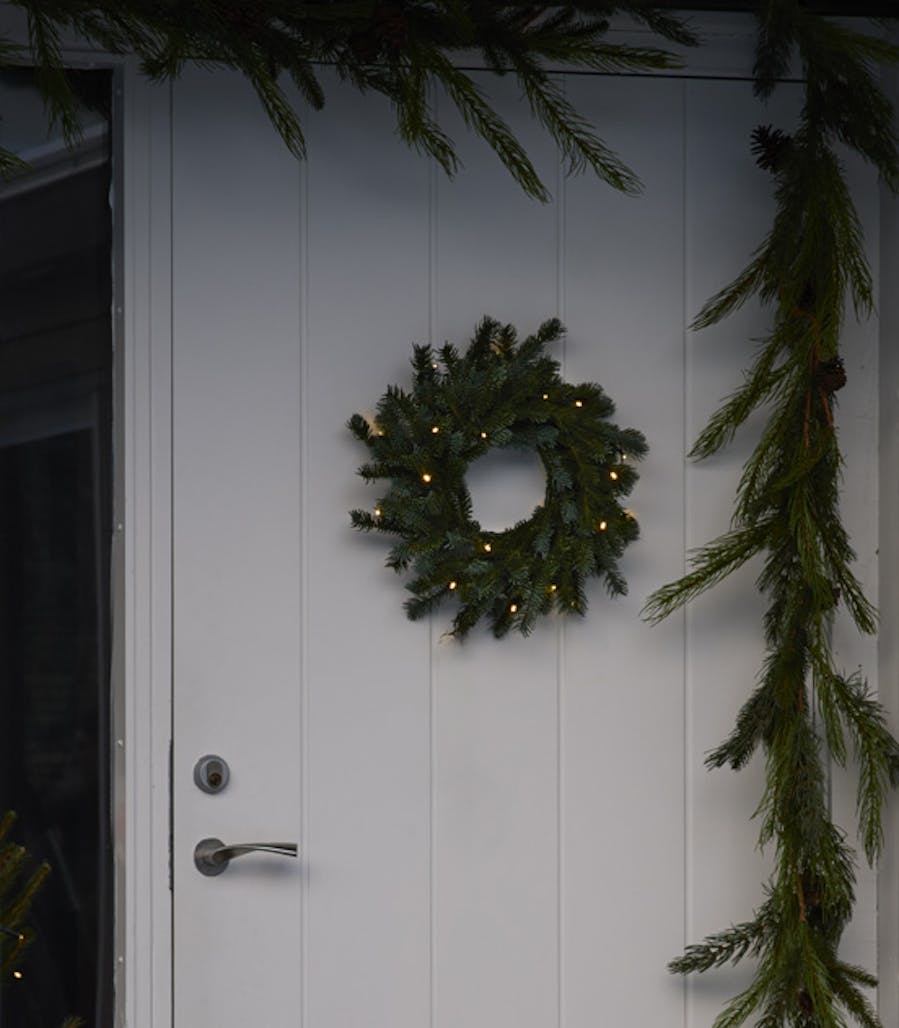 Att sätta upp julbelysning utomhus är helt klart ett vinnande koncept för julstämningen. Börja med ljusslingor som får slingra sig runt räcket eller dörren. Lys gärna även upp ett litet träd eller en buske intill entrén – det ser både inbjudande och trevligt ut. Vill du skapa en mer inspirerande och berättande julsaga på din uteplats är dekorationsbelysning kanske det bästa valet för dig. Varför inte både och?