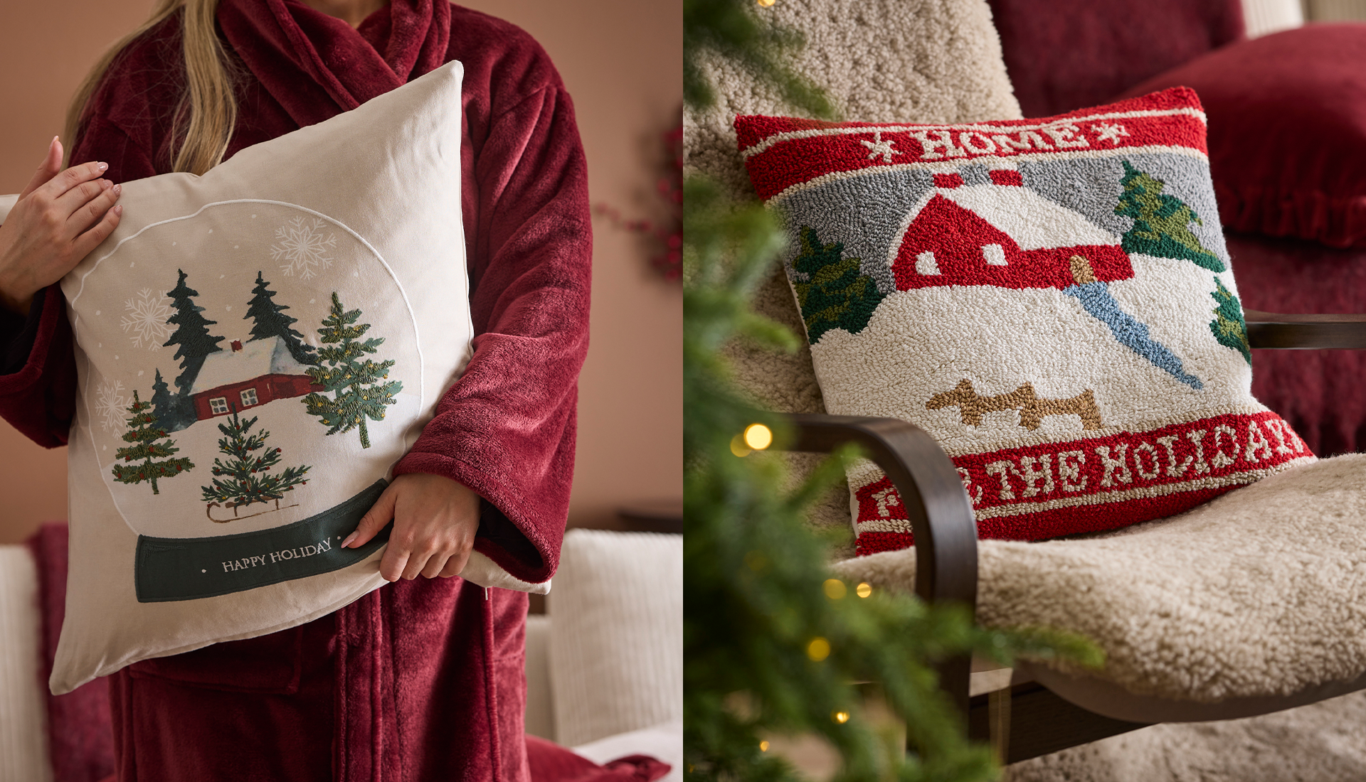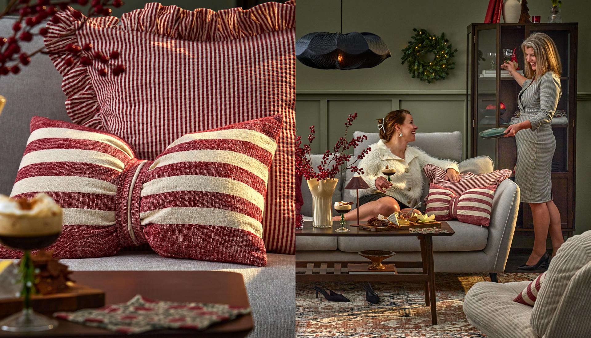 När snöflingorna trillar ner utanför fönstret och du precis tänt upp din vackra julbelysning är det få saker som slår att ha en inbjudande soffa att slå sig ner i. Dekorera den i julens röda färgpalett och låt det bli en riktigt varm vinterdröm att längta efter! Vackra polkaränder, julröd sammet eller härliga julmotiv? Varför inte mixa och matcha – när det kommer till kuddar kompletterar de ofta varandra.