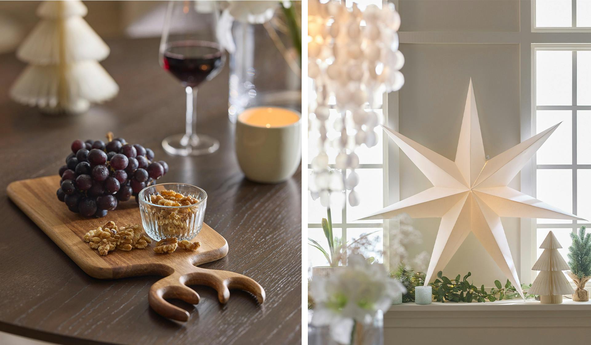 Fira en skimrande och glimrande jul! Inred med vitt, ljusa och neutrala toner. Känslan ska vara ton i ton och genomtänkt. På så vis blir basen lugn. Sedan bygger du på med många ljus, stjärnor och ljusslingor. Även metaller som bidrar med blänk och skimmer. Det kan vara detaljer i guld och mässing om du vill få in lite värme. Eller så går du mot det kalla och lite mer krispiga som exempelvis krom. Oavsett så blir det effektfullt med metallerna som ger en lite lyxig känsla.