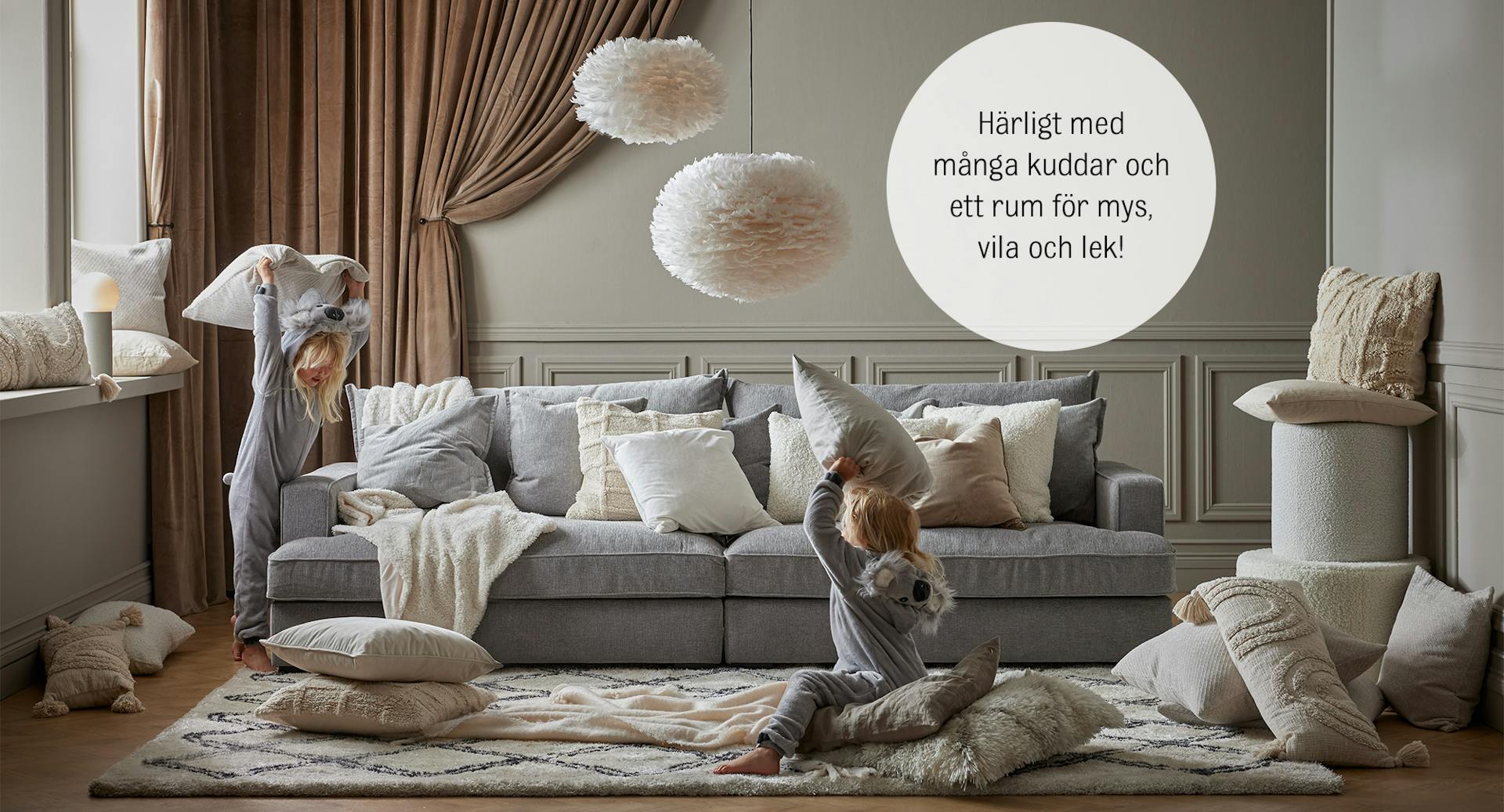 Vem vill inte få till en varm hemkänsla när det börjar bli kyligare utomhus? Skapa rum som bjuder in till såväl bus och lek som vila och avkoppling. Mjukt, skönt och gosigt är tre nyckelord.