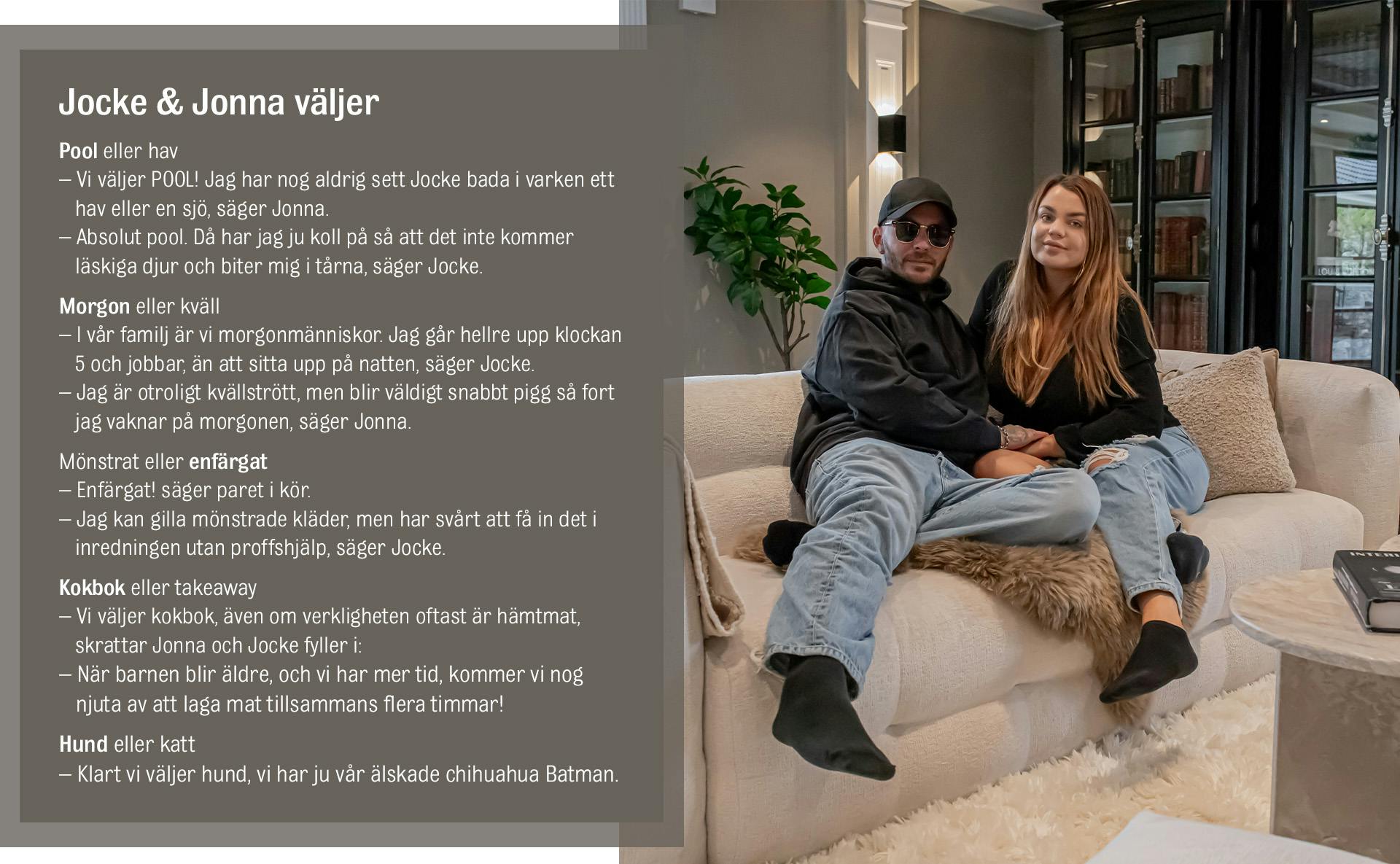 En av Sveriges kanske mest kända renoveringsresor har kompletterats med ännu en färd. Efter flera försök att inreda Lundellhuset beslöt sig Jocke och Jonna att ta hjälp av Mio. ”Äntligen har vi en röd tråd genom inredningen i hela huset. Nu älskar vi att vara här”, säger det framgångsrika entreprenörsparet.