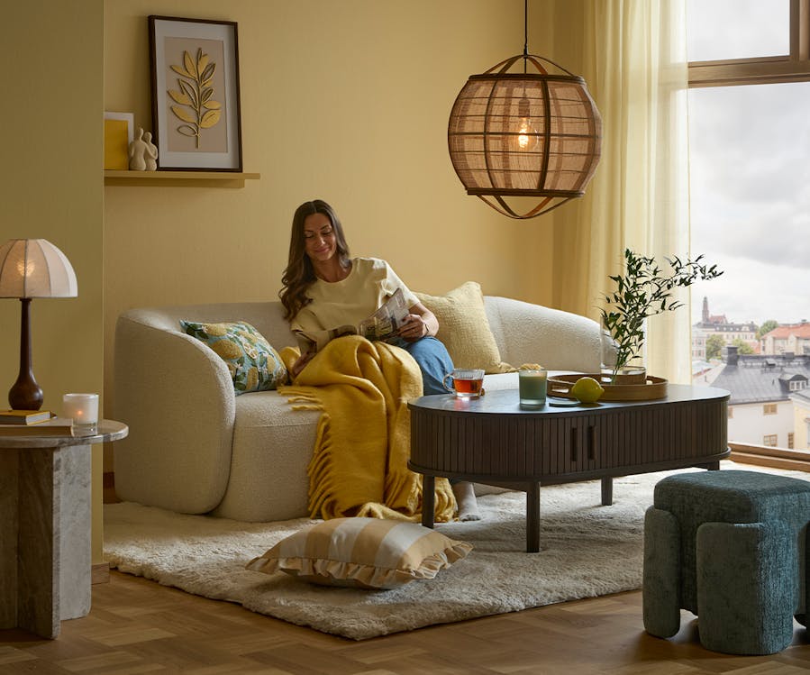 Lätta gardiner som vajar i vinden, färgglada kuddfodral och en matta i naturnära toner – små detaljer som gör stor skillnad. Addera vaser med säsongens blommor och skapa en avslappnad plats där du kan njuta av ljumma sommarkvällar, med eller utan sol.