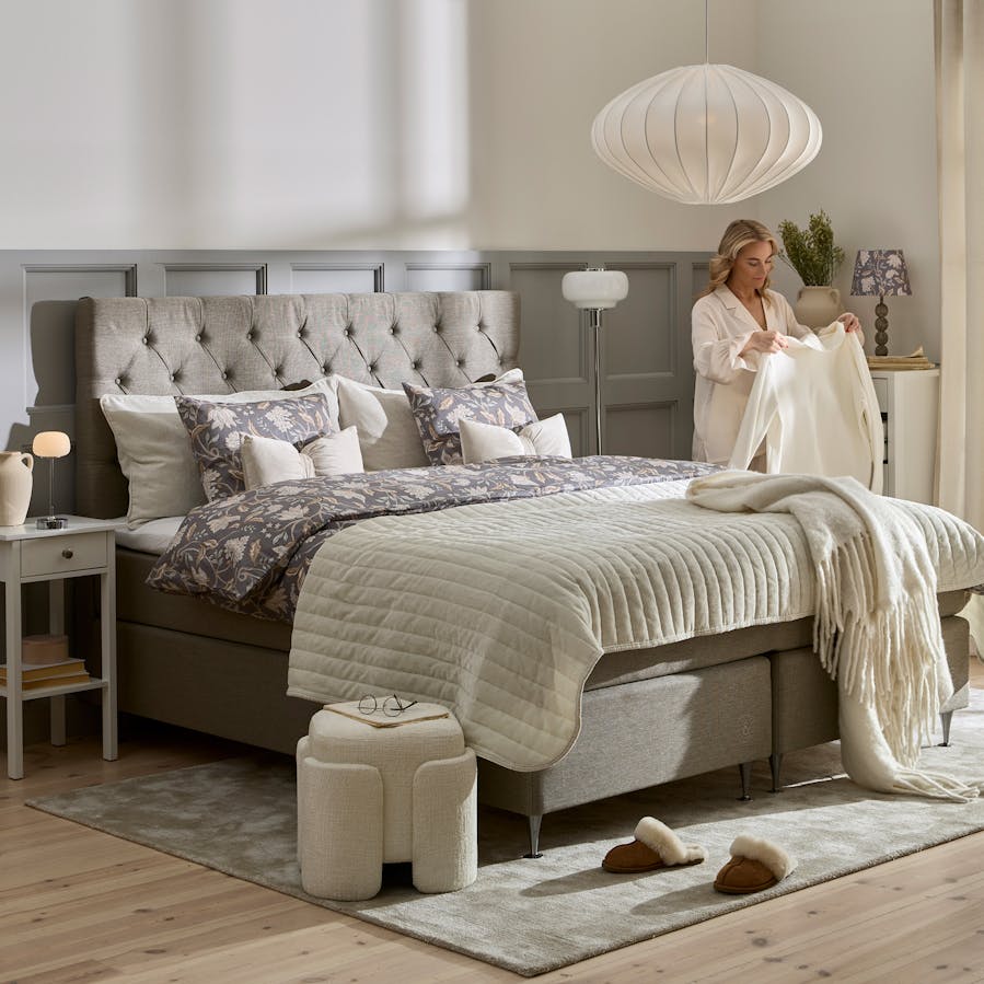 Starta det nya året på bästa möjliga sätt genom att vakna utvilad i en skön säng! Investera i en ny favoritkudde och ett värmande täcke för vinterns kalla nätter. Se till att bädda rent årets sista dag, för visst finns det få saker som är så skönt som att sova i nytvättade sängkläder? Skapa härlig nyårskänsla i sovrummet med ljusa textilier och fina mönster. Linne, bomull eller bäckebölja – vad gillar du att sova i?