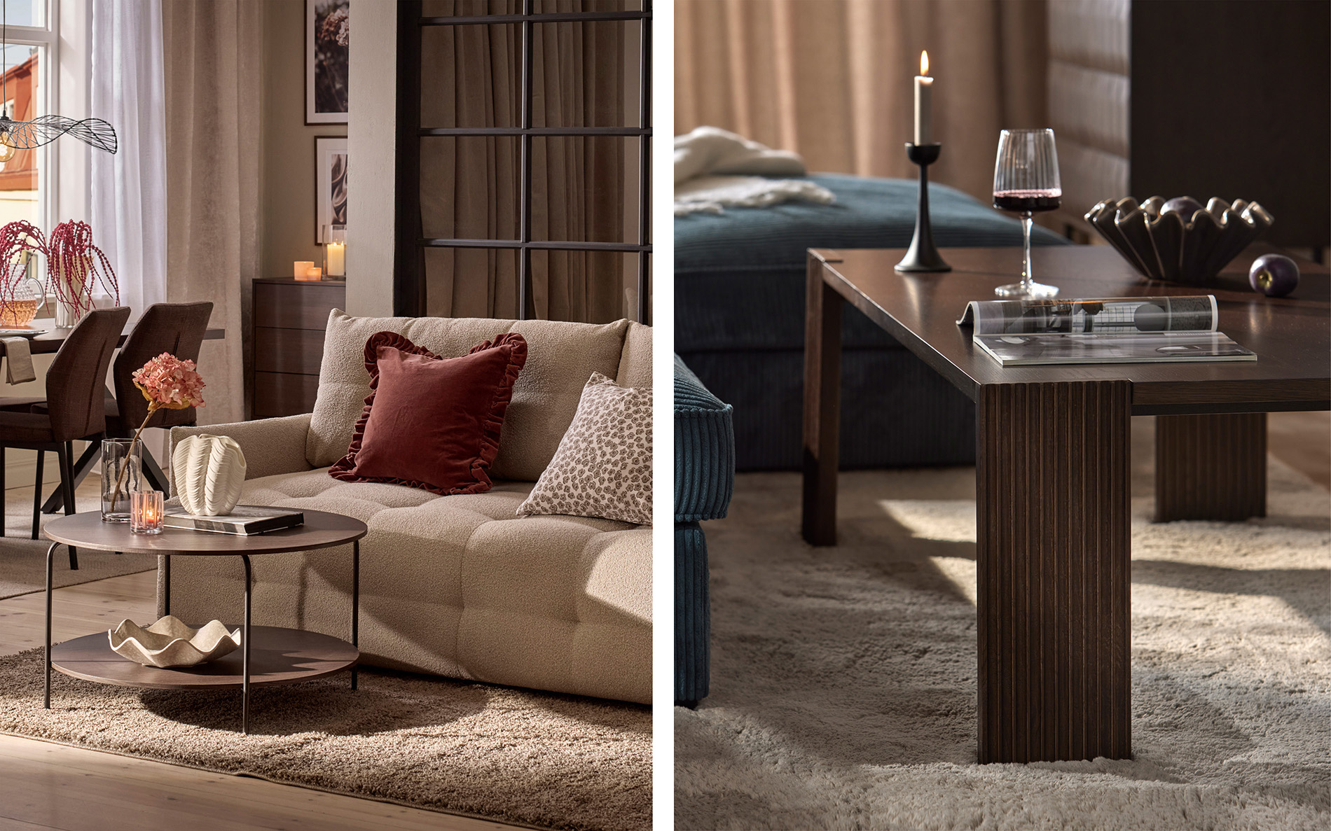 Låt höstens färger leta sig in i ditt vardagsrum, ös på med textilier och tänd massor av ljus. Det känns som ett bra recept på mys! Gör ditt hem redo för en ny säsong, en tid vi mer än gärna spenderar i hemmets lugna vrå tillsammans med familj och vänner. Vi har höstnyheter som piffar till ditt vardagsrum lite extra!