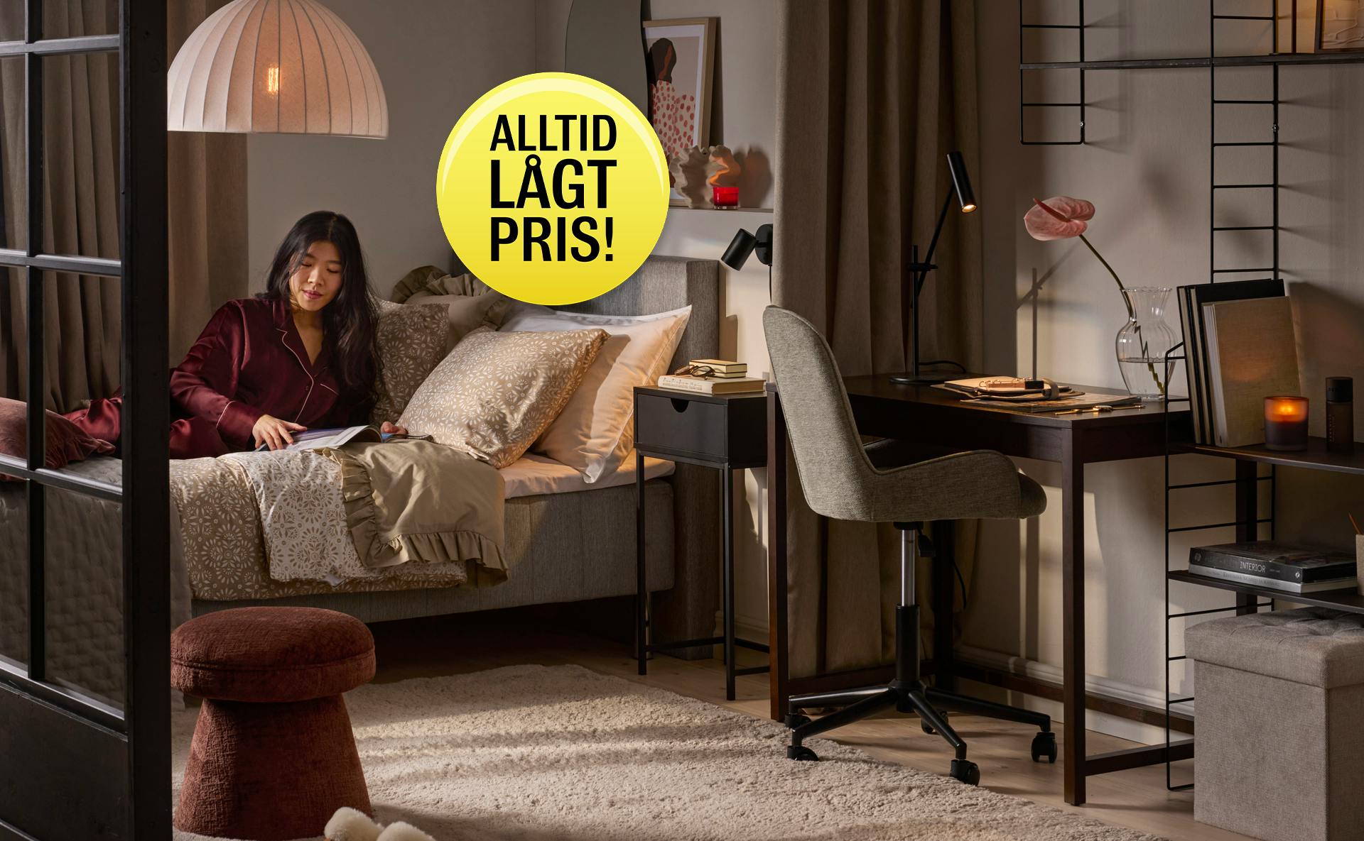 Att inreda sin egen mysiga vrå av världen är bland det roligaste som finns! Och vet du vad? Det behöver inte kosta mycket att skapa ett hem i din stil du kan vara stolt över och längta efter. Håll utkik efter våra gula markeringar – dessa produkter har alltid lågt pris, men håller samma fina kvalitet som vårt övriga sortiment, såklart!