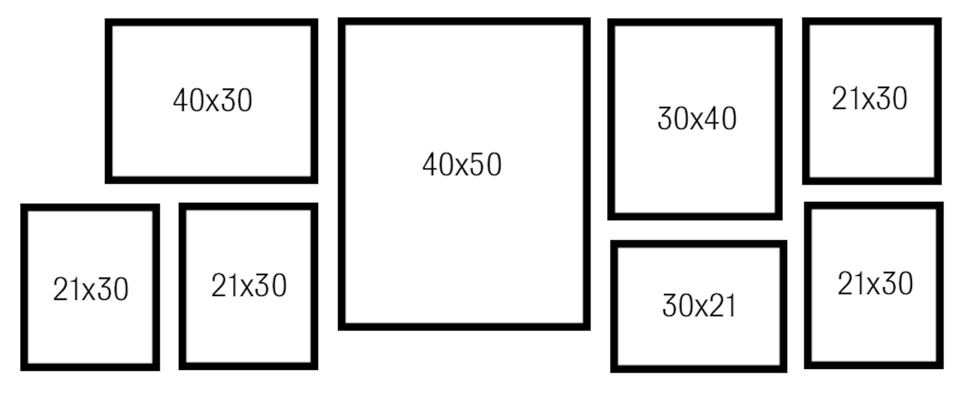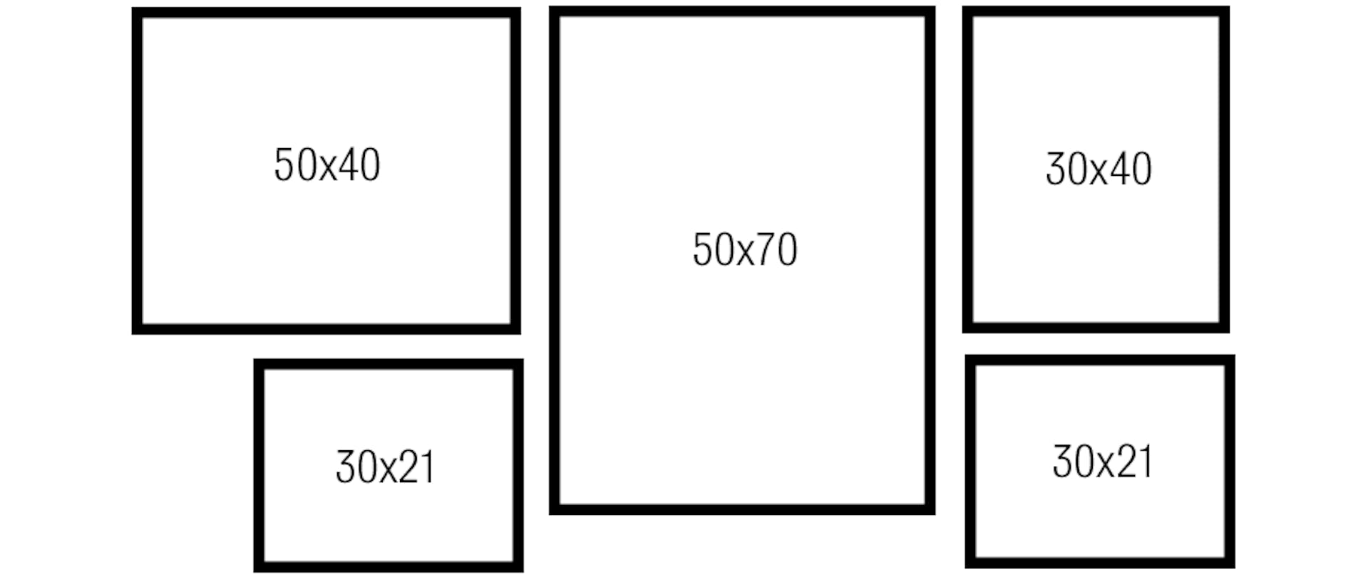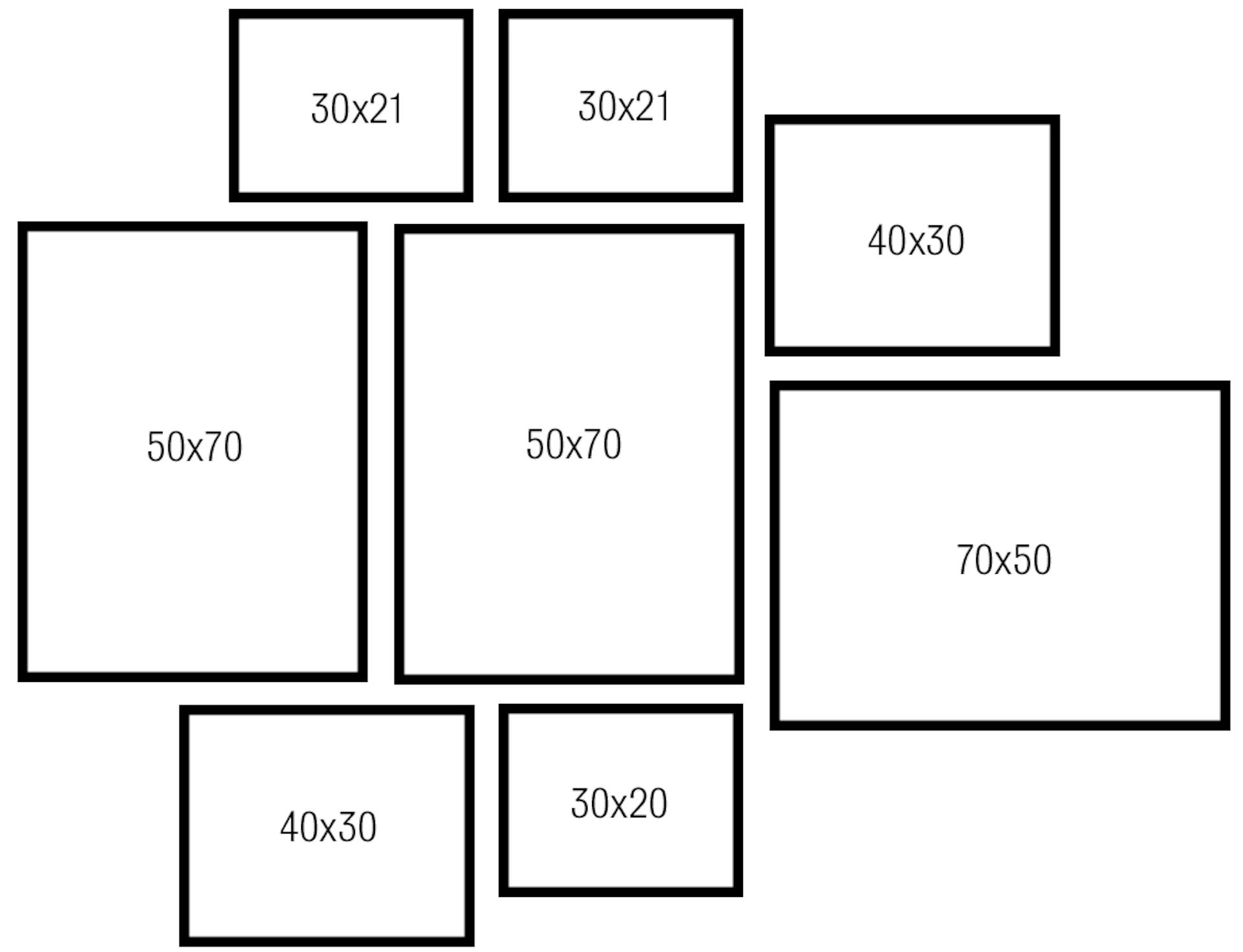 Mellanstor tavelvägg: Den här tavelväggen är totalt 161 cm bred och 68 cm hög om du har 7 cm mellan tavlorna.