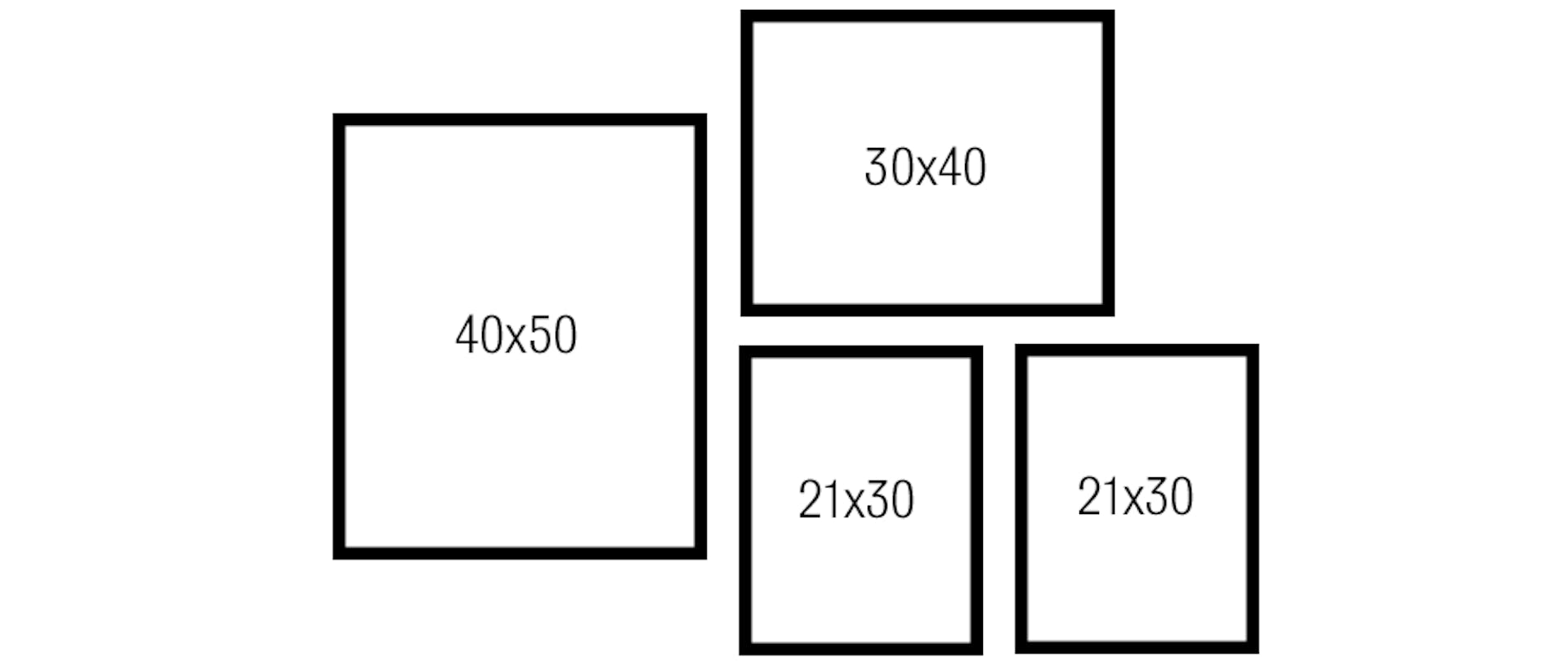 Liten tavelvägg: Den här tavelväggen är totalt 96 cm bred och 67 cm hög om du har 7 cm mellan tavlorna.