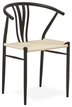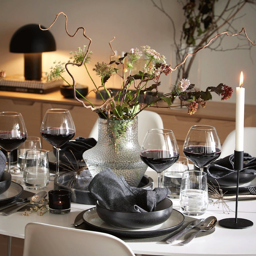 Till det här bordet passar det bra med stolar som har lite runda former. Extra snyggt med svarta för kontrastens skull.