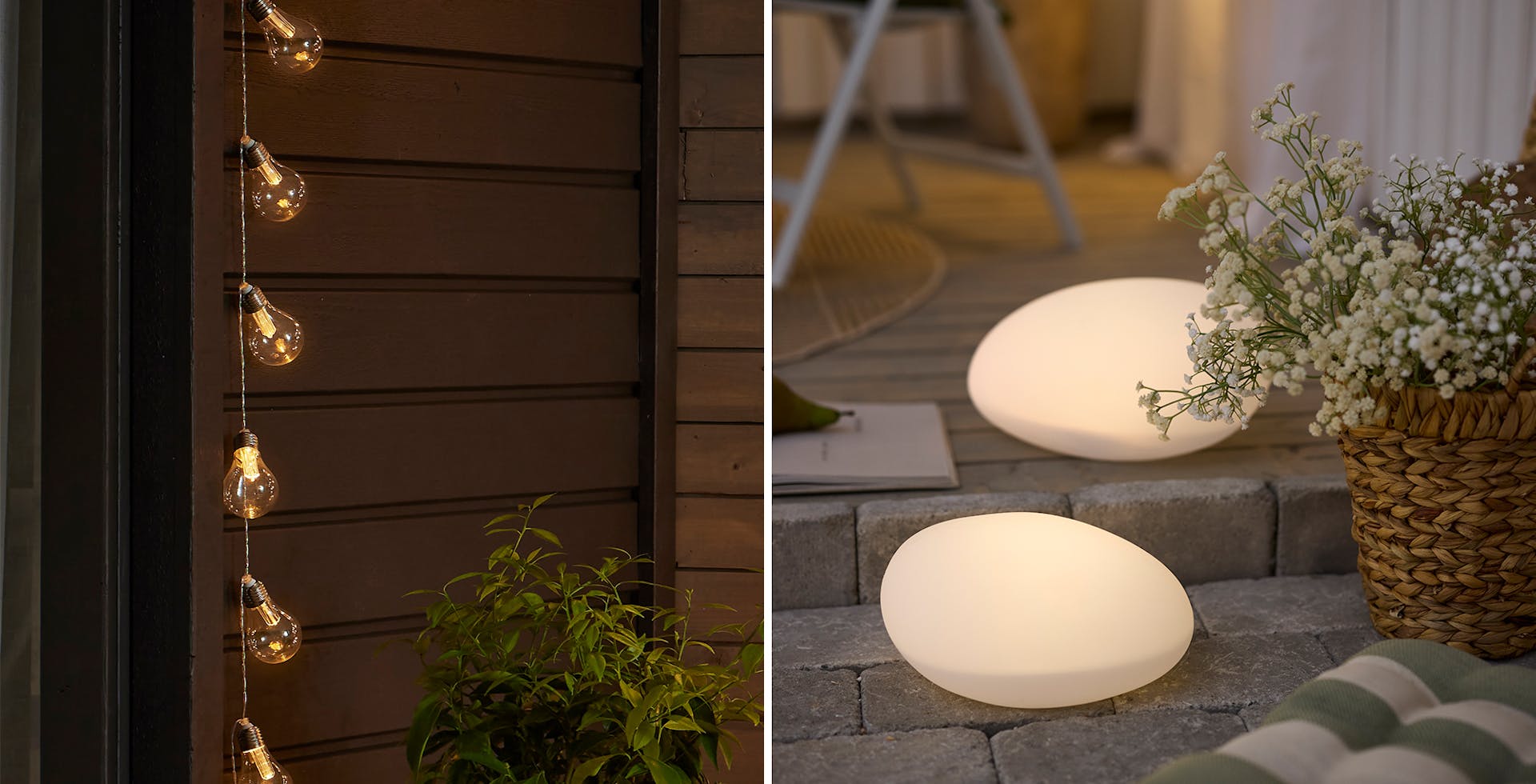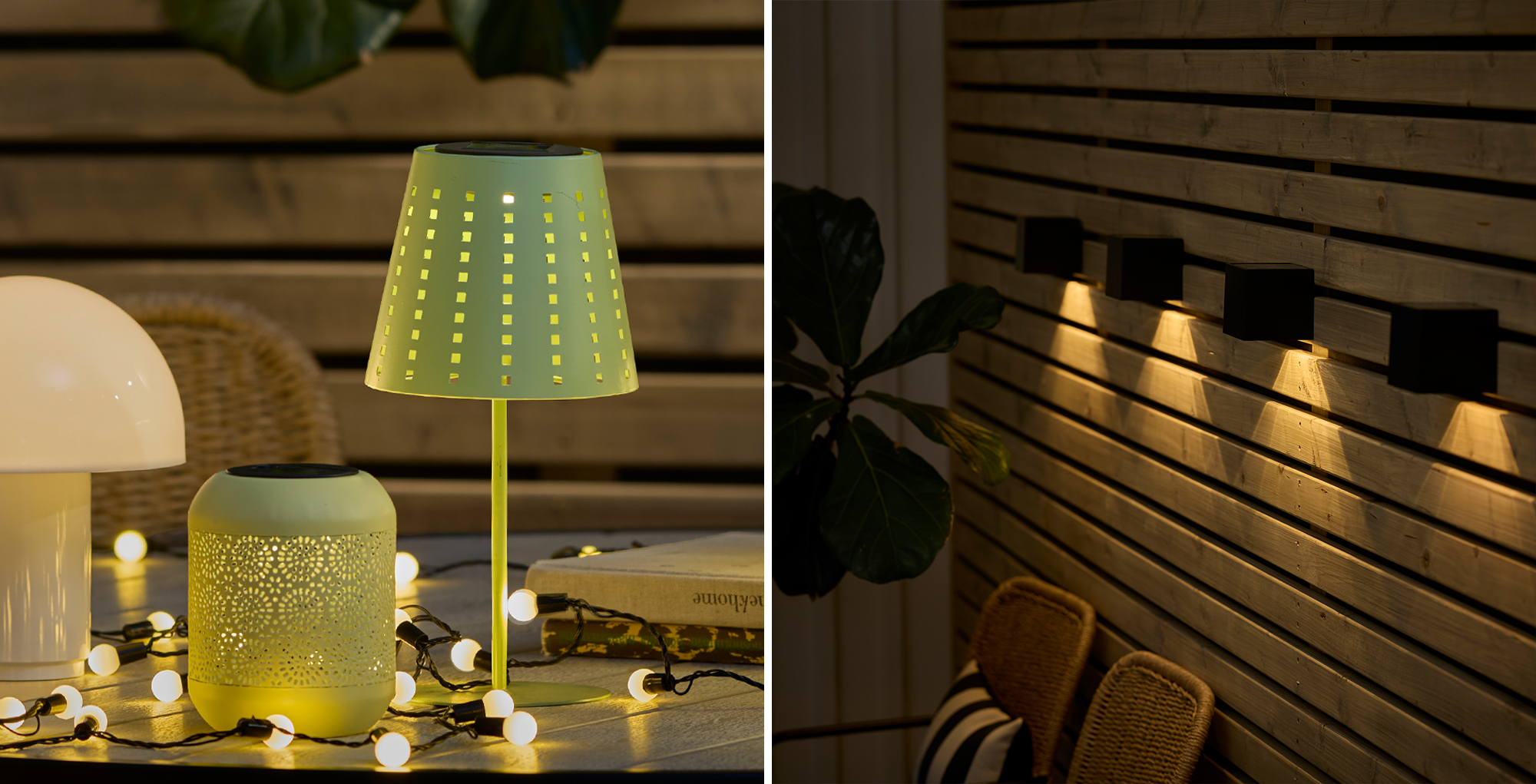 Solcellslampor laddas av solen på dagen och tänds av sig själva i skymningen. Det är ett enkelt sätt att göra trädgården, uteplatsen eller balkongen både vackrare och mer funktionell – kväll efter kväll.