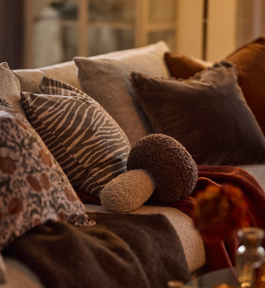 Precis som vi byter garderob när årstiderna skiftar, kan vi med enkla medel ge soffan en ny känsla genom att uppdatera prydnadskuddarna. På våren kanske du vill plocka in ljusa pasteller och luftiga material, och när hösten smyger sig på är det dags att omfamna det murriga och mysiga. Då passar varma toner som rostrött, senapsgult och skogsgrönt. Och till julen? Då får kuddarna gärna gå i klassiskt rött, grönt och vitt! Kanske med inslag av brodyr, glitter eller stickade strukturer för att få till den där extra julkänslan.