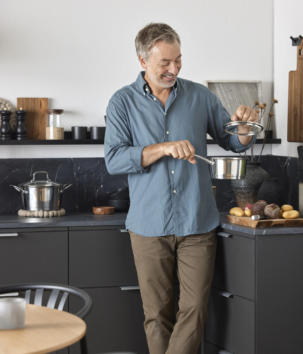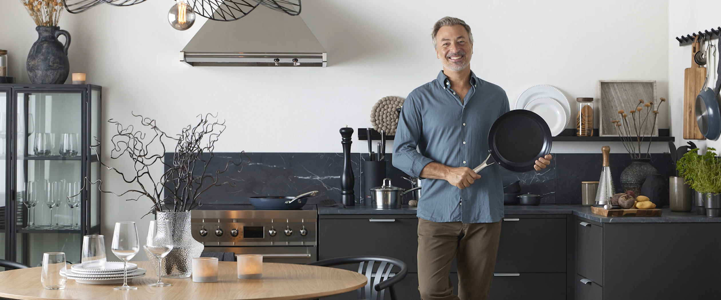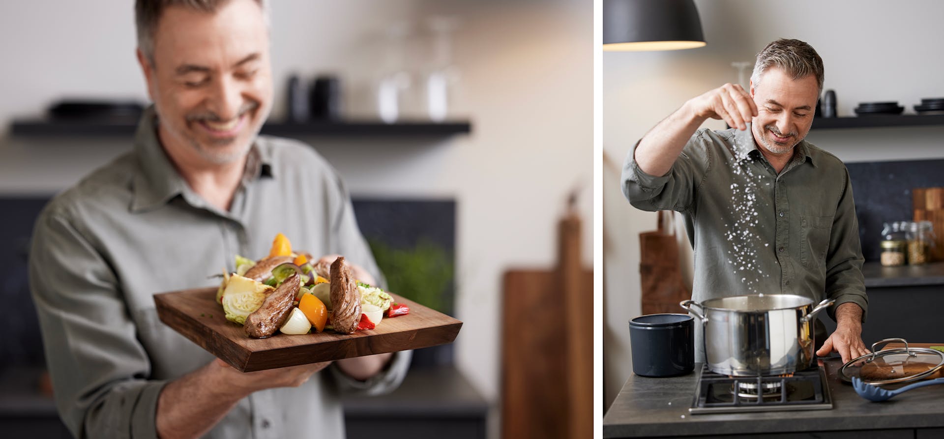 – När vi började prata om köksserien kändes det givet att jobba med samma värdegrunder. En del köksprodukter är bara snygga och det håller inte i längden. Vi har prioriterat funktion och kvalitet. Jättefin design också såklart, för det är givetvis kul med snygga grejer. Men vi har medvetet valt ett tidlöst utseende och en färgskala med mer jordnära färger som man inte tröttnar på. Och de håller även i ett restaurangkök!
