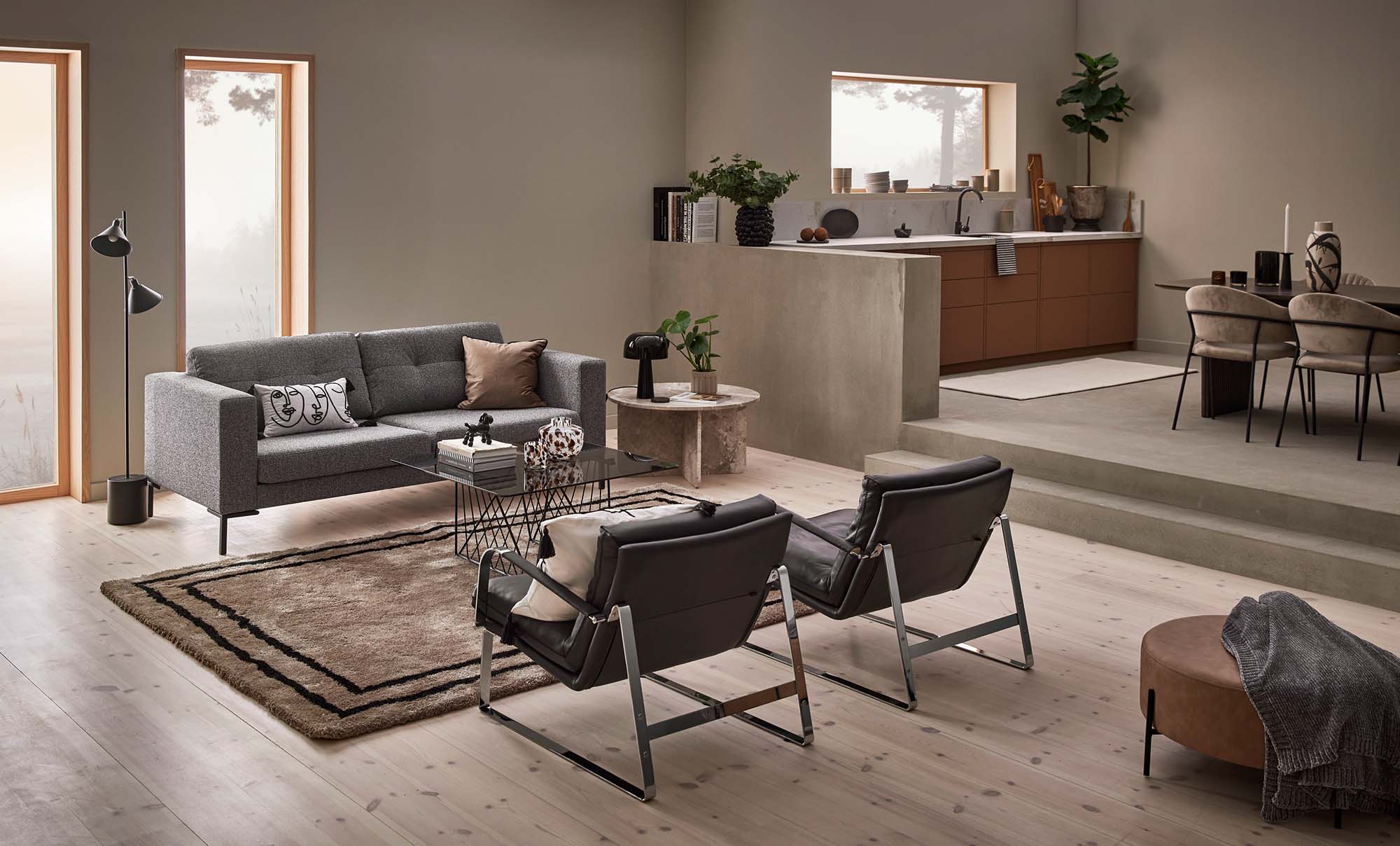 Med en sparsmakad elegans och monokrom färgskala skapas rum som är sofistikerat tidlösa. Naturfärger som beige, grått och brunt ligger som en lugn bas. Blått och även mörka träslag är exempel på accenter som livar upp.