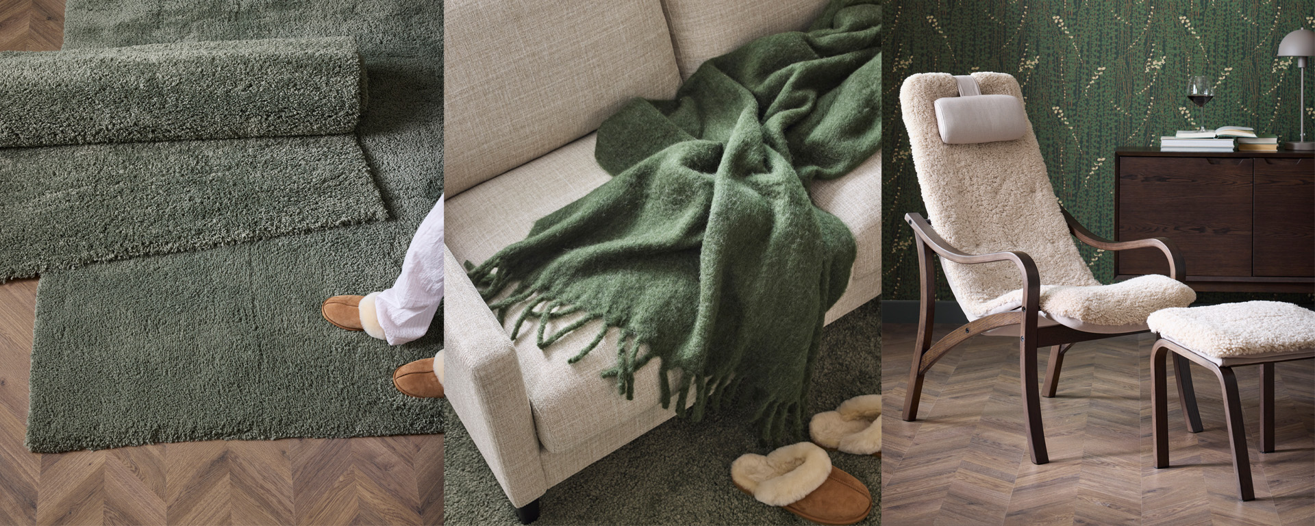 Blanda olika nyanser av grönt – svala, dova och varma. Grönt anses ha en lugnande effekt och associeras med välmående.