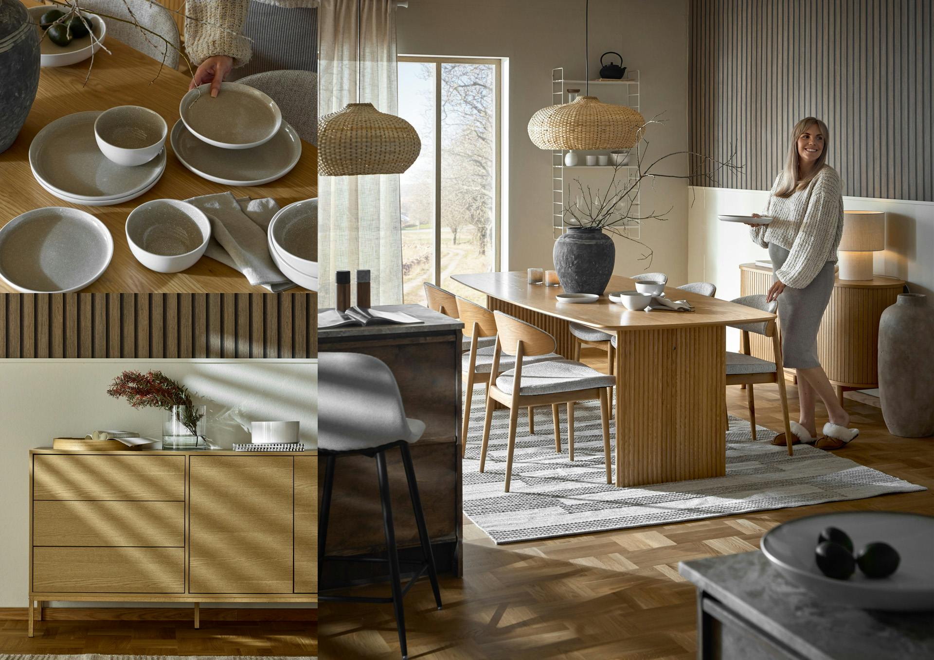 Mota höstmörkret med en ljus matplats, härligt inbjudande med öppna ytor. Låt ribbade ytor finnas med som en röd tråd i inredningen.