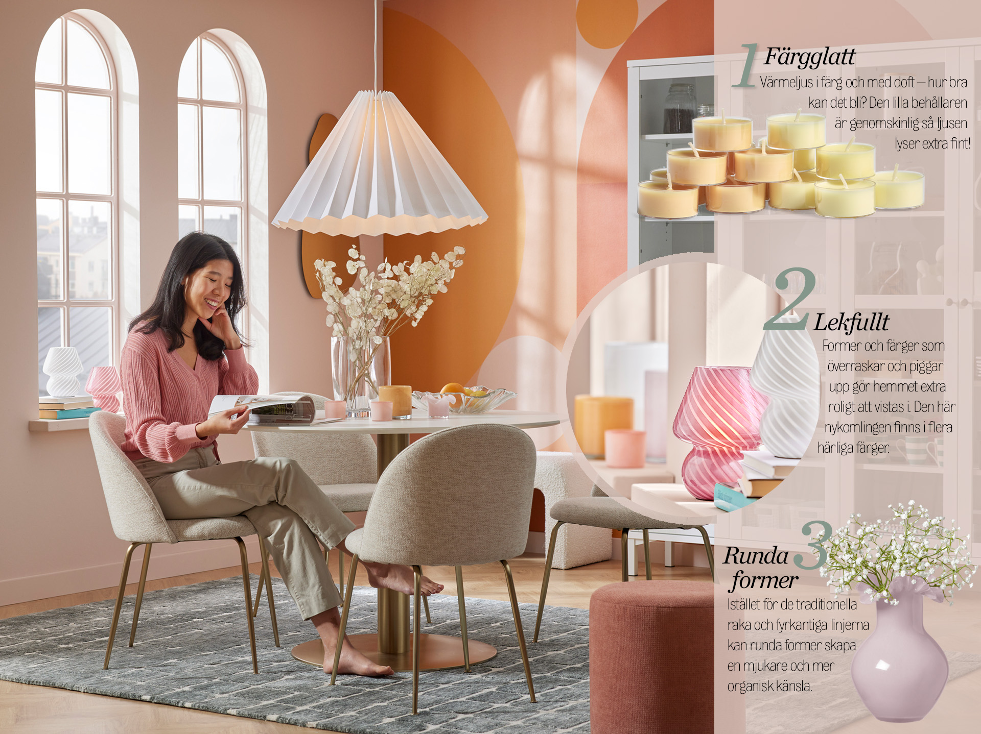 Tips! Låt basen i inredningen vara lugn och färgen finnas i detaljer som du lätt kan byta ut.