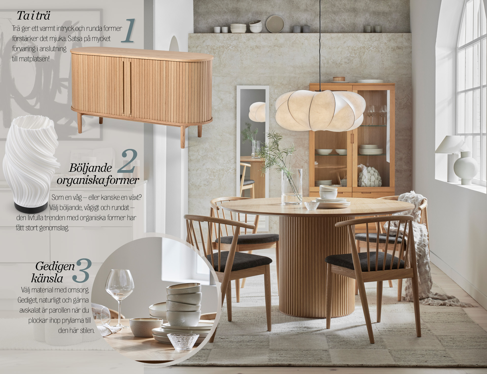 En skandinavisk stil i botten, det vita och neutrala från 80-talet och formerna från såväl 50-som 70-talet utgör grunden för den här eleganta trenden. Runda och mjuka former samsas med ljusa neutraler och rosa toner. Hantverk spelar en central roll och konstvärlden känns ständigt närvarande. Det är mer välkomnande och mysigt än funktionellt. Naturmaterial som ull, trä och sten känns självklara.