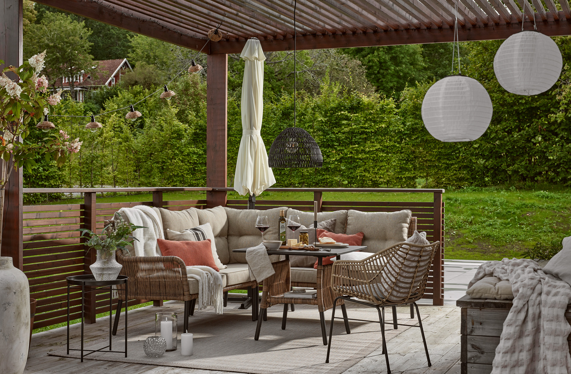 När varmare vindar börjar svepa in längtar vi efter att flytta ut. Inred ett inbjudande utevardagsrum för lata stunder och festliga tillfällen. Hitta möbler och inredning som funkar lika bra för läsning som en bubblande stund med någon du tycker om. Med hjälp av kuddar, växter och belysning får du till en personlig stil. Inspireras gärna av våra miljöer!