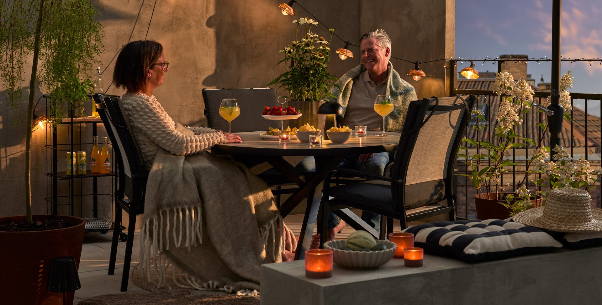 Klart att du ska fortsätta att leva uteliv även när solen gått ner. Vad vore sommaren utan grillmiddagar, sällskapsspel och långa pratstunder med vänner? Gärna med något gott i glasen, musik och snacks. En gosig pläd är bästa sällskapet in på småtimmarna och skapa gärna stämning med en ljusslinga.