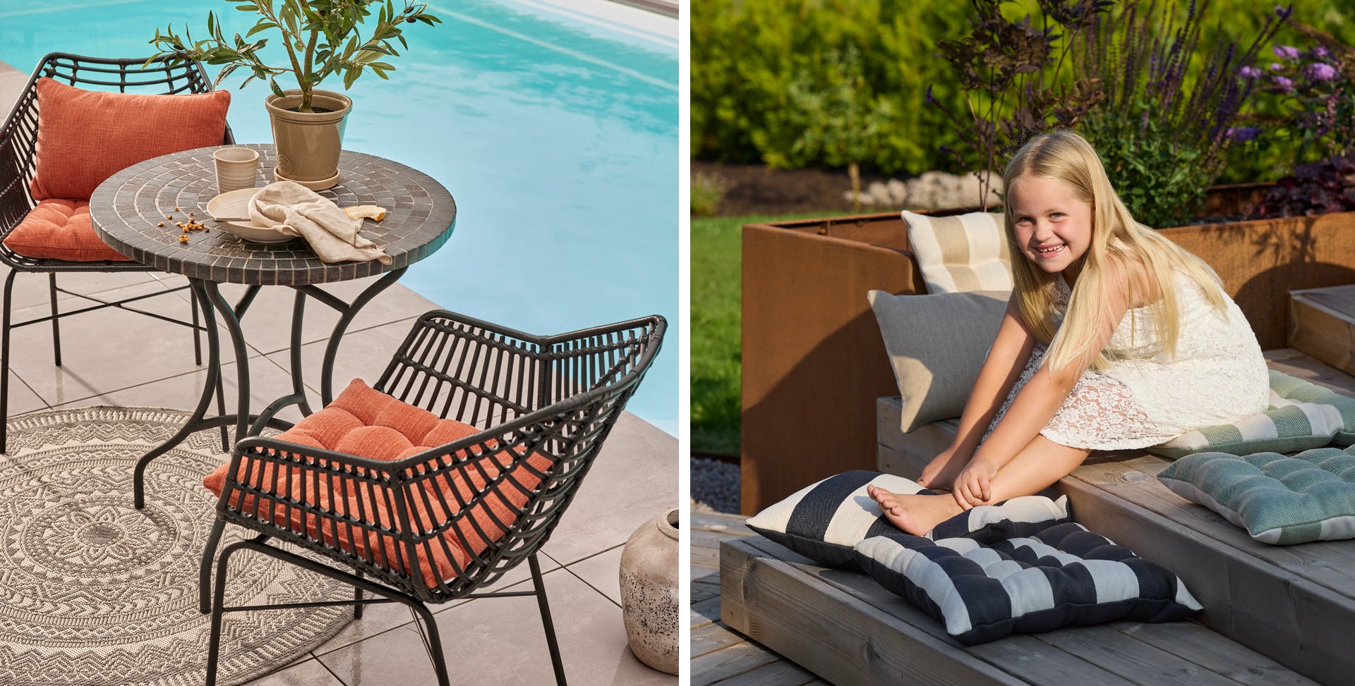 Sommaren är en tid för avkoppling. Extra härlig blir den med dynor, kuddar och plädar som mjukar upp.