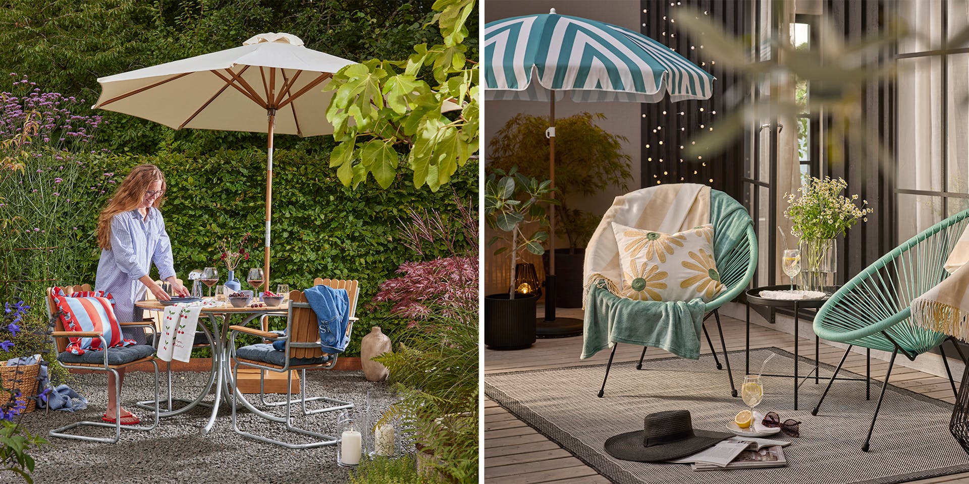 Behöver du ett parasoll på balkongen? Välj ett som är lite mindre eller varför inte ett halvt för att spara plats? Finns i vårt sortiment!