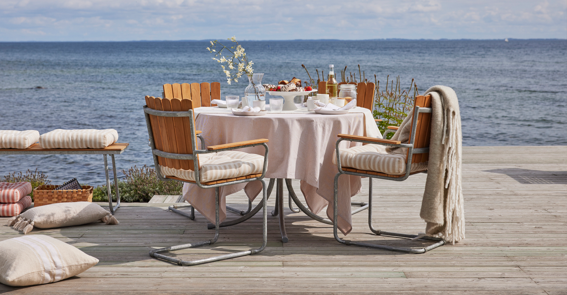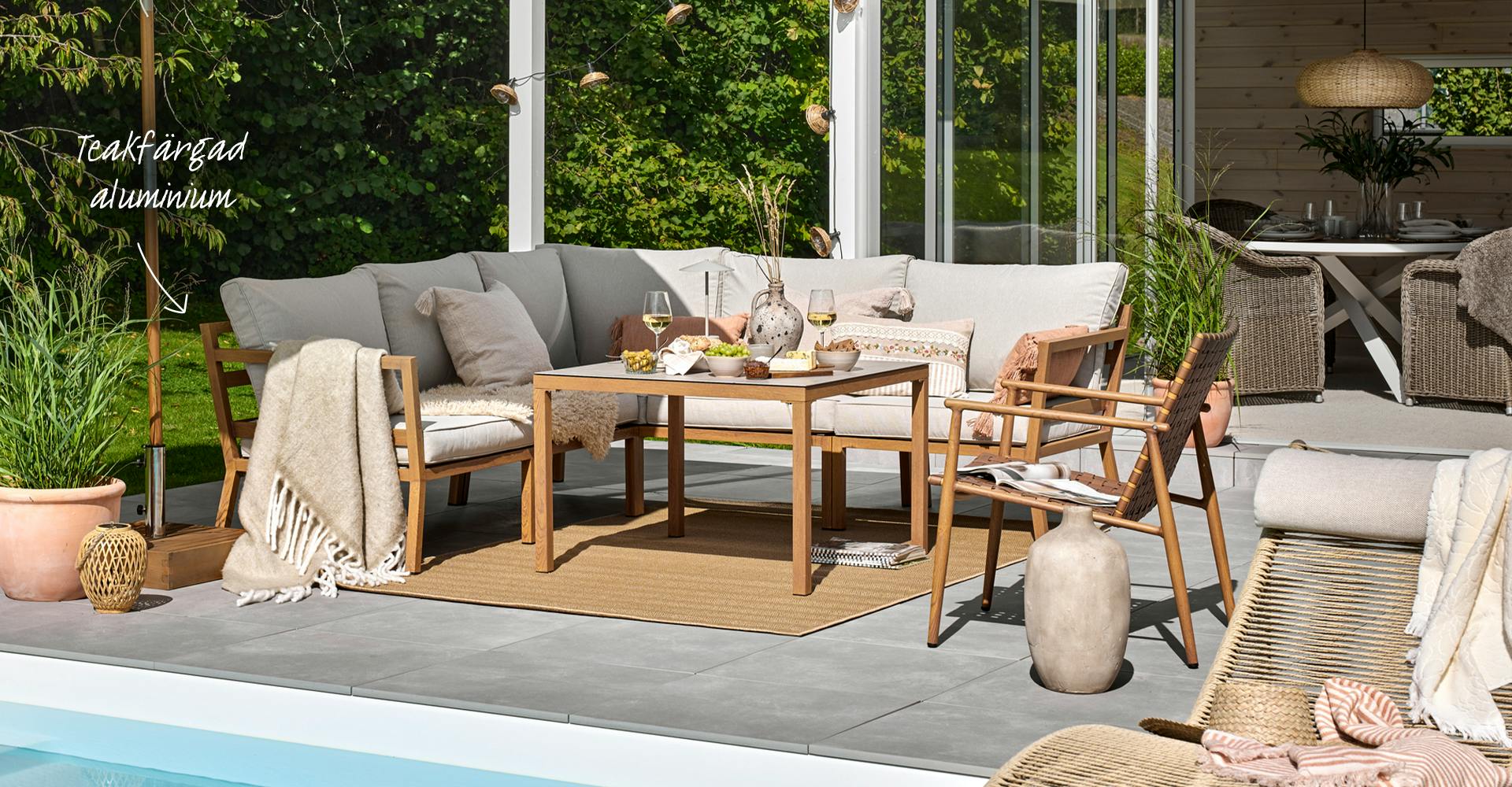 Sätt nordisk prägel med trä. Trämöbler är ett klassiskt inslag i våra trädgårdar och blir bara vackrare med åren om du tar hand om dem väl. Olja eller vaxa in dem så förlänger du livslängden. Har du uteplatsen vid vattnet får du gärna ge dem lite extra kärlek och omtanke. Vill du lägga mindre tid på underhåll kan utemöbler i tåligt konstträ vara ett perfekt alternativ för dig.