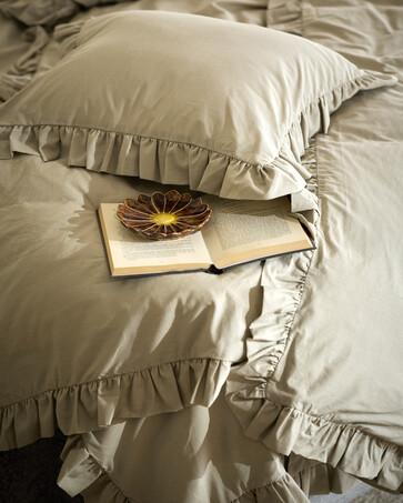2 varianterBridgeportPåslakanset i garnfärgad bomull med volang
