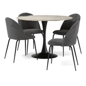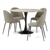 Ge hemmet stil med Kali matbord i elegant sintrad sten och svart metallfot. Matcha med Kiwi-stolar i olika färger för perfekt elegans!