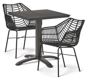 Njut av utomhusvistelser med vårt stilrena och lättskötta utebord med en slitstark konstträskiva och en rostfri aluminiumstomme. Kombinera det med snygga, underhållsfria karmstolar i konstrotting för en elegant och inbjudande atmosfär.