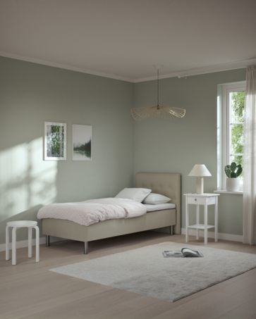 En 90 cm bred säng ger en rymligare sovyta än en 80 säng men är fortfarande kompakt nog för att passa i mindre rum. Detta gör den särskilt populär i mindre rum där den erbjuder en inbjudande sovplats utan att ta över hela rummet. Den fungerar också utmärkt som en flexibel extrabädd som kan kompletteras med en bäddmadrass för ännu bättre komfort.