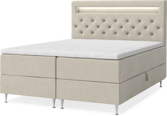 +2+30 varianterNew YorkFörvaringssäng, dubbelsäng med bäddmadrass och sänggavel LEDPAKETPRIS