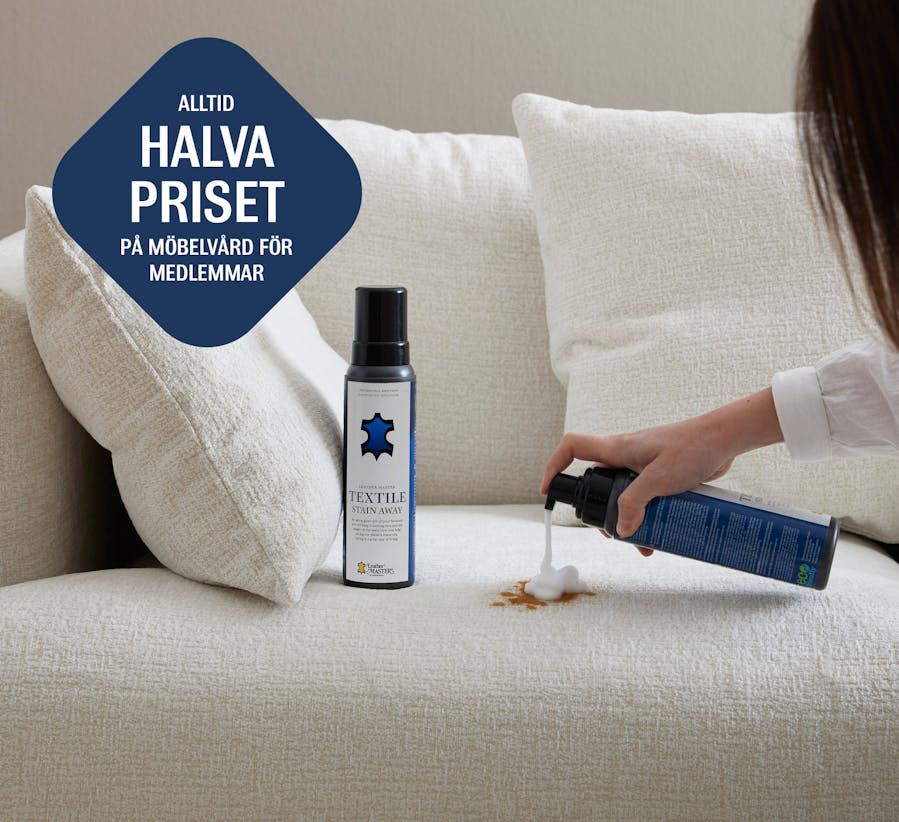 Leather Master Scandinavia är marknadsledande på material- och möbelvård i Sverige och samarbetet med Mio har pågått i 20 år. Som Mio-medlem får du alltid 50% rabatt på möbelvård.