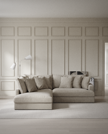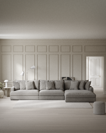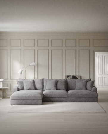 En schäslongsoffa är utrustad med ett armstöd vid schäslongdelen och ses ofta som en förlängning av sittplymån. Soffan erbjuder en bekväm plats där du kan koppla av och lägga upp fötterna. Armstödet på schäslongen ger stöd och definierar tydligt gränsen mellan sitt- och viloavdelningen. Schäslongsoffor är därför idealiska för dig som söker en avkopplande och komfortabel sittplats med tydlig separering av vilo- och sittytor.