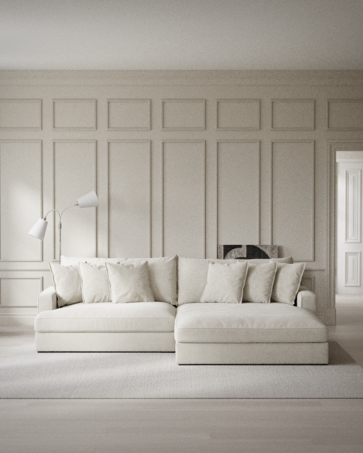 Oavsett om du föredrar ett luftigt möblerat vardagsrum eller gärna omger dig med många möbler och mycket inredning bidrar divan- och schäslongsoffor med flexibilitet och elegans. Värt att notera är att en divan- eller schäslongsoffa ofta kan placeras direkt mot en vägg eller med divanen mot ett öppet avslut.