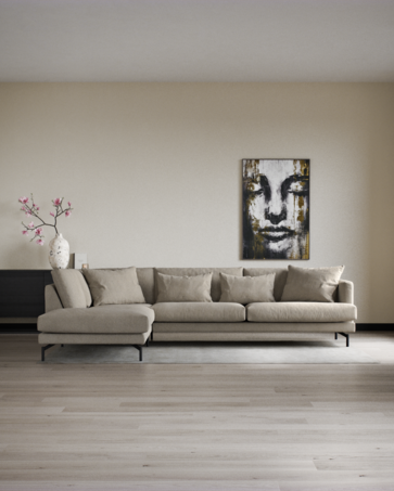En divansoffa kan betraktas som en hörnsoffa, men med en väsentlig skillnad. Den har en öppen design på divandelen, vilket innebär att det inte finns något armstöd på den förlängda sidan. Det öppna avslutet ger flexibilitet och gör det enklare att möblera så som du vill ha det i vardagsrummet.