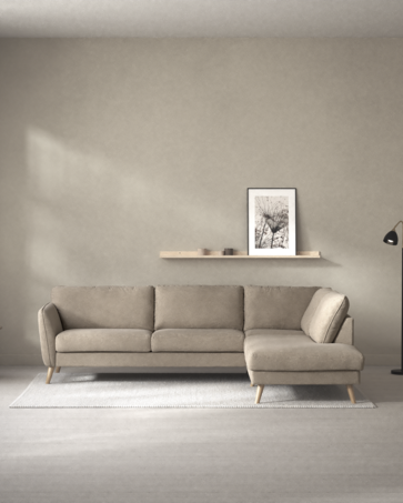 En schäslongsoffa är utrustad med ett armstöd vid schäslongdelen och ses ofta som en förlängning av sittplymån. Soffan erbjuder en bekväm plats där du kan koppla av och lägga upp fötterna. Armstödet på schäslongen ger stöd och definierar tydligt gränsen mellan sitt- och viloavdelningen. Schäslongsoffor är därför idealiska för dig som söker en avkopplande och komfortabel sittplats med tydlig separering av vilo- och sittytor.