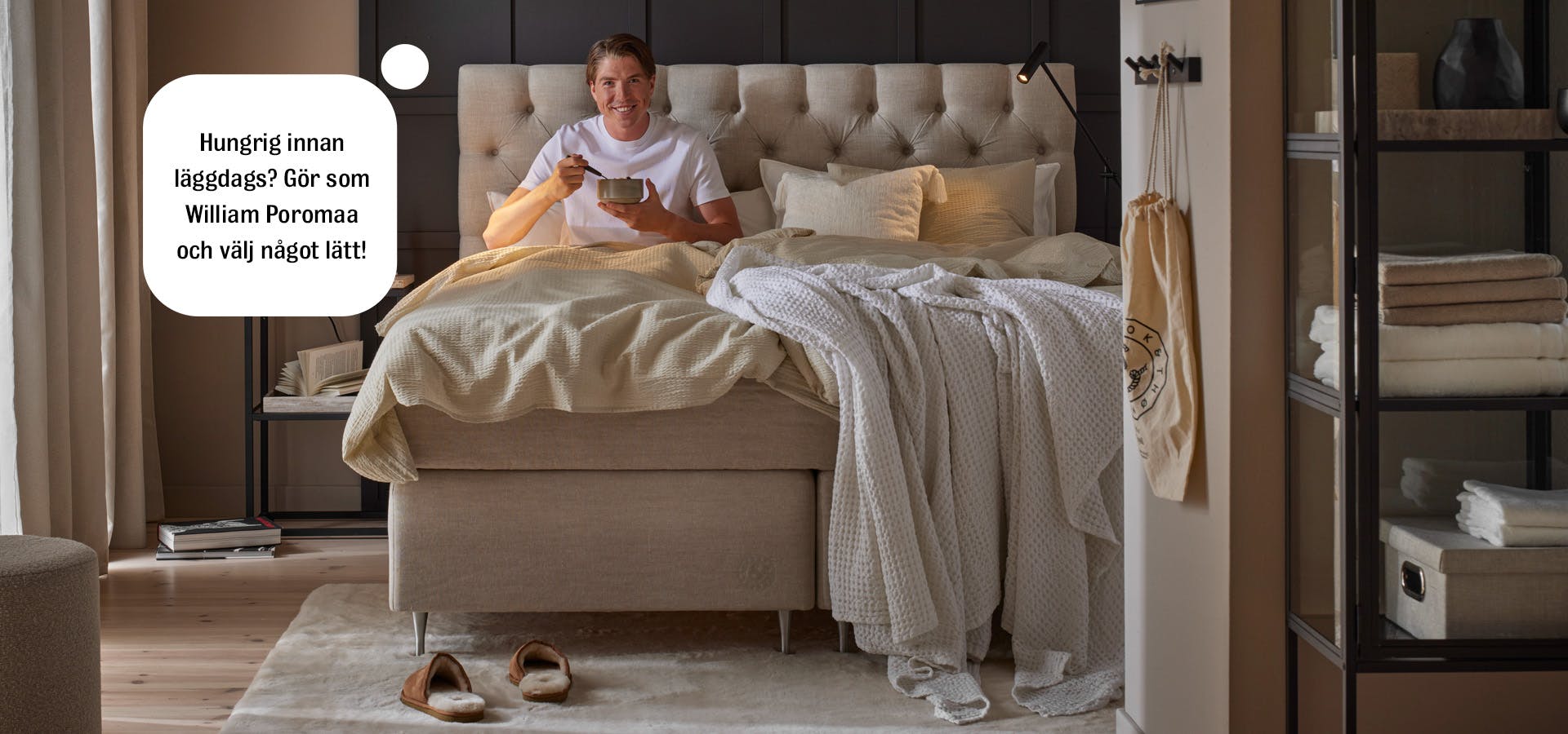– Forskning visar att matsmältningen och sömnen underlättas av att äta middag några timmar före sänggåendet, inte direkt inpå läggdags. Men att gå till sängs på fastande mage eller med hungerkänslor kan också störa sömnen. Är du hungrig kan något lätt som innehåller en kombination av långsamma kolhydrater och proteiner – exempelvis en bit frukt, nötter eller havregryn – hjälpa till att främja sömnen.