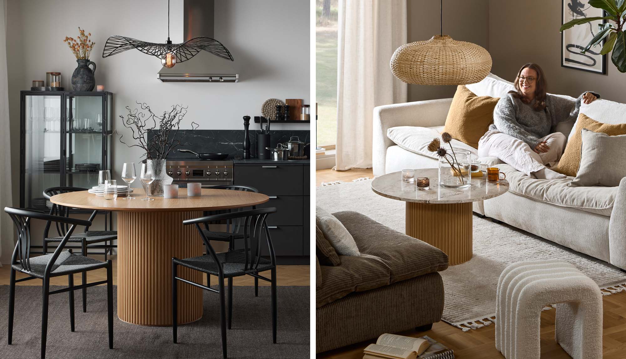 Låt rummets planlösning avgöra vilken storlek på matbord som passar. Fundera även över var i rummet du planerar att placera matgruppen och bestäm därefter vilken form som gör sig bäst. Astrid är runt men ”syskonbordet” Ines har rektangulär form och de dekorativa ribborna på underredet är rundade till skillnad mot Astrids mer kantiga. Vad passar bäst hemma hos dig?