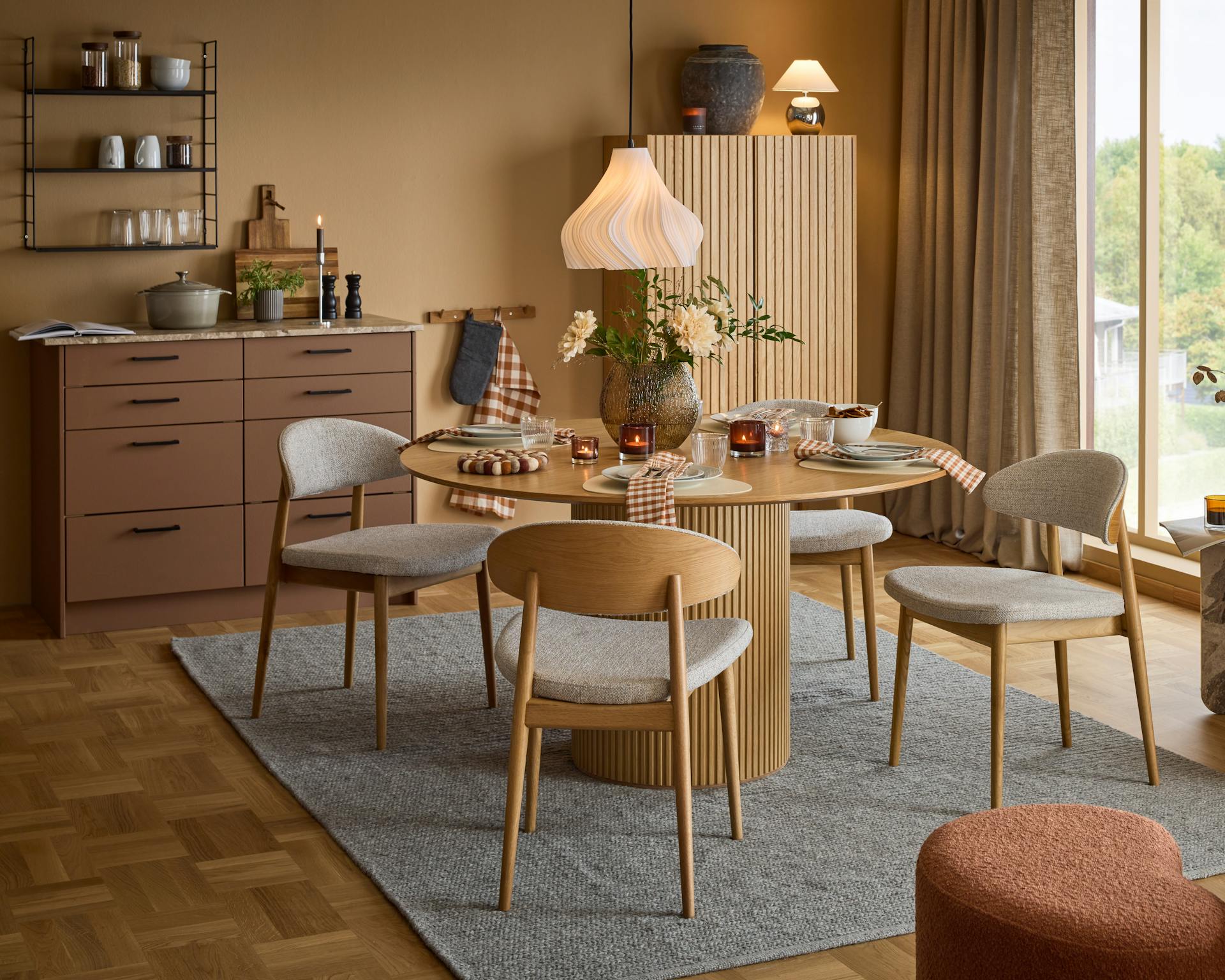 En möbelserie för dig som tycker om design och är ute efter ett modernt uttryck. Astrid sticker ut och drar blickarna till sig. De dekorativa ribborna, skapade i ekfaner av massiva ekstavar, tillför bordet det lilla extra.