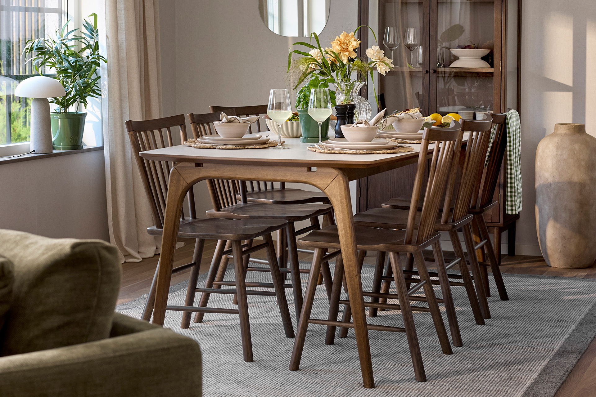 Oavsett vilket material du väljer får du ett hållbart bord i FSC®-märkt trä, lika vackert som funktionellt. Många har upptäckt fördelarna med laminat. Den tåliga konstruktionen gör att bordet klarar både läxläsning, pyssel, spelkvällar och festmiddagar – utan att förlora sin elegans. Materialet står emot repor, stötar och fläckar. Det behåller även sin färg över tid och är lätt att rengöra.